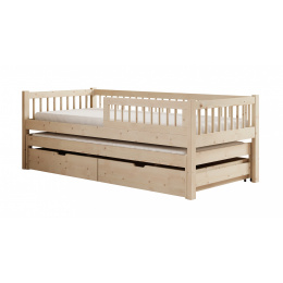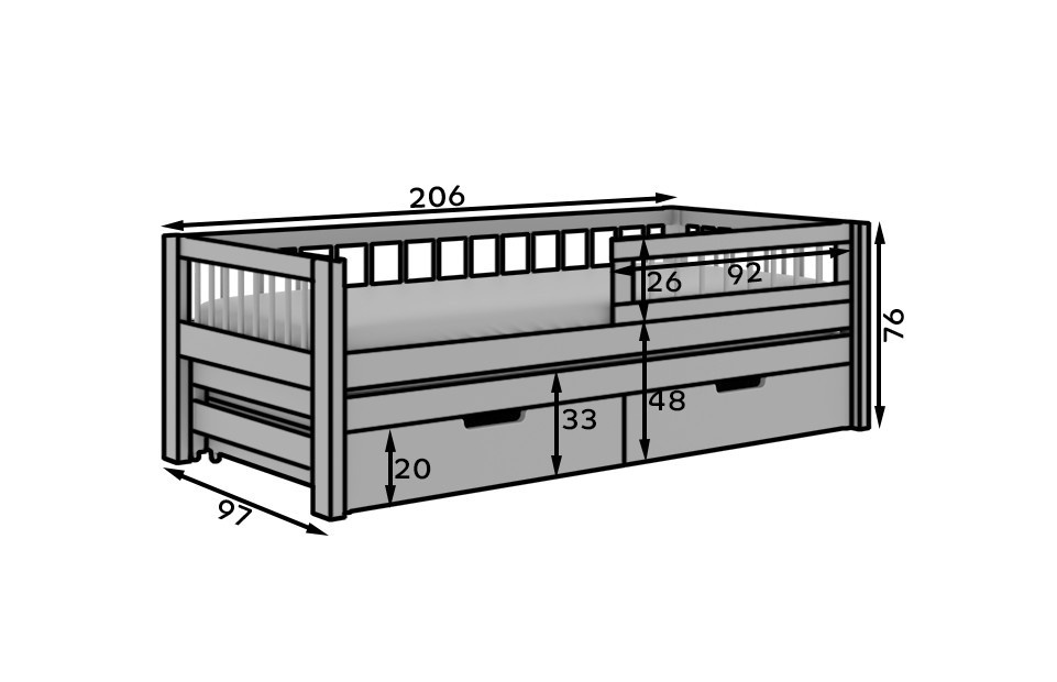 Dětská postel Orio – to je ideální řešení pro sourozence nebo děti, které potřebují více prostoru. Dvoulůžková postel je k dispozici ve dvou velikostech: 180x80 cm a 200x90 cm, což umožňuje přizpůsobit ji různým potřebám a velikostem pokoje.Vyrobeno z pevných materiálů, postel je k dispozici ve dvou atraktivních barevných variantách: bílá a borovice, což usnadňuje její sladění s interiérem každé místnosti. Další výhodou jsou **dva kontejnery** umístěné pod postelí, které poskytují dodatečný prostor pro uložení ložního prádla, hraček nebo jiných věcí, čímž udržují pořádek v dětském pokoji.Postel Orio spojuje funkčnost s estetikou, nabízí pohodlný spánek a praktická řešení pro každý den.