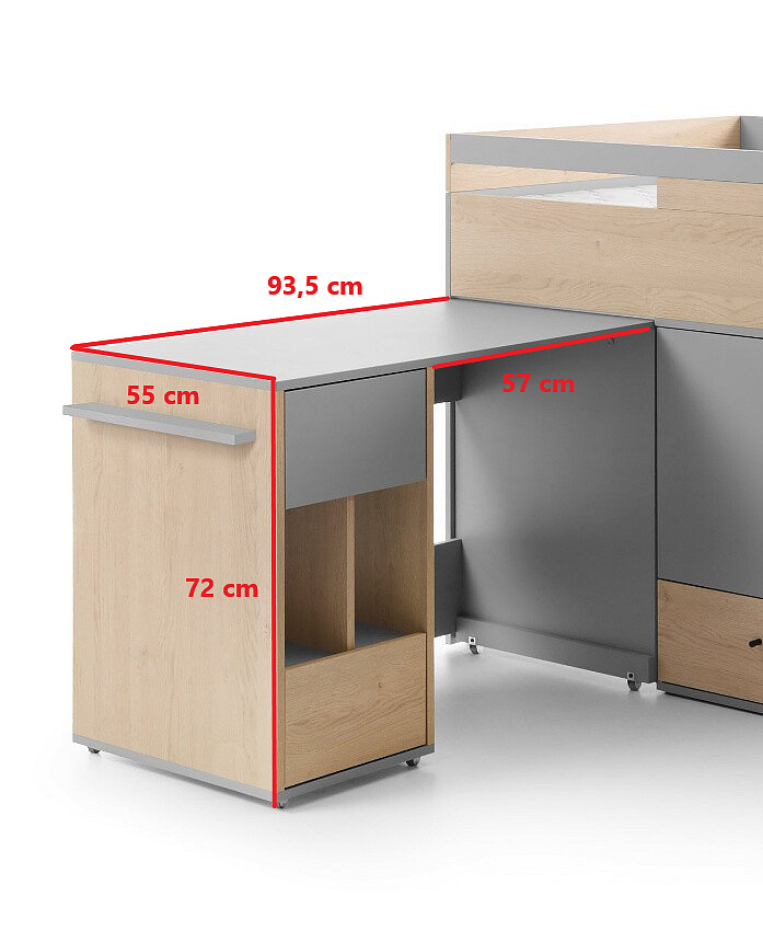 - Postel je včetně výsuvného psacího stolu a komod