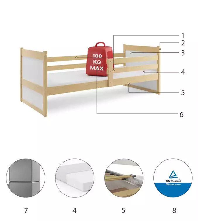 - Certifikovaná postel - kvalita a bezpečnost v souladu s normami TUV.