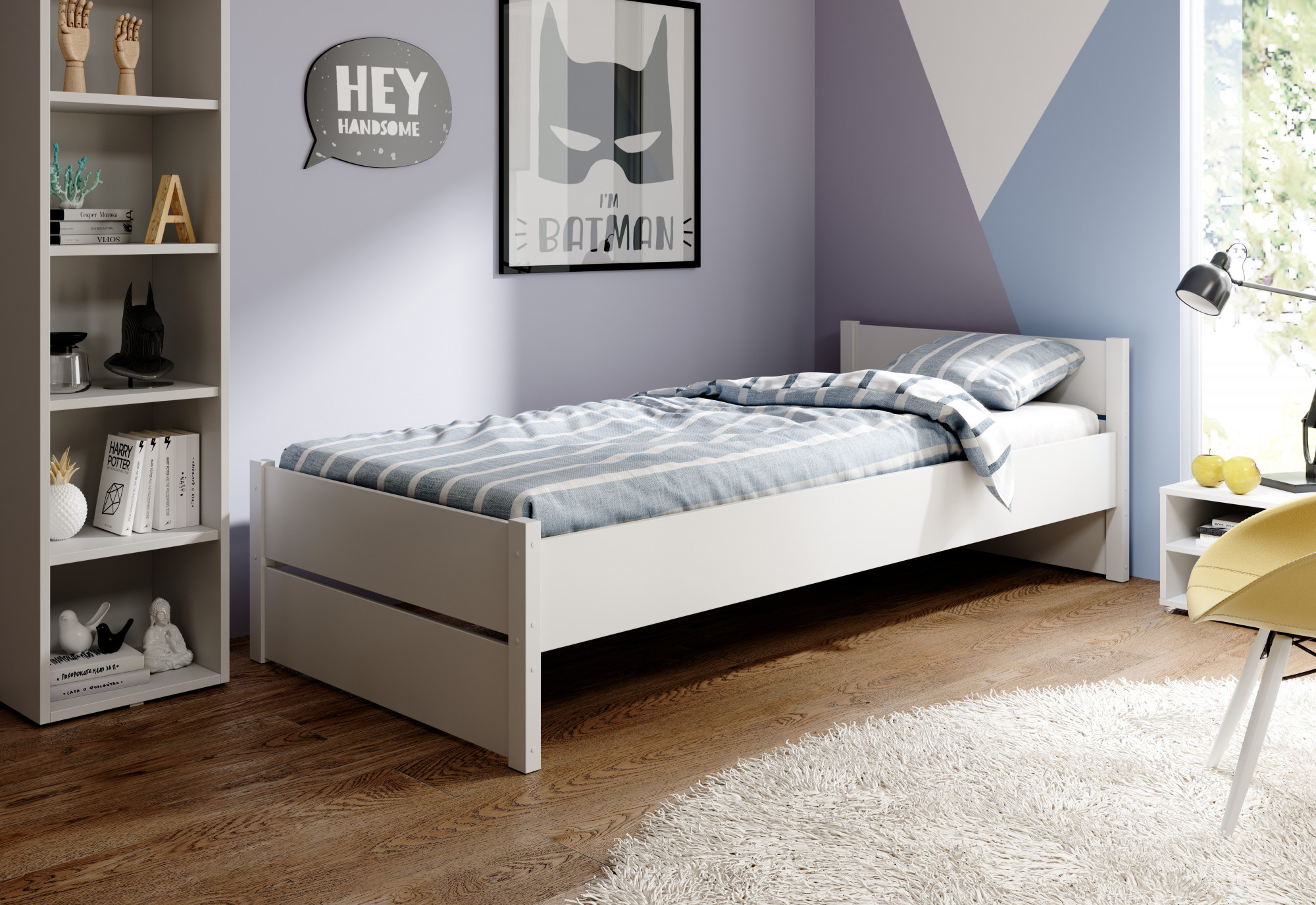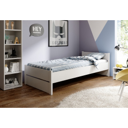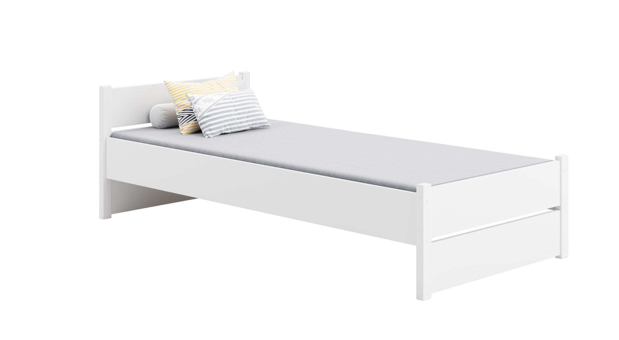 Jednolůžková postel z kolekce MARCELLO s jednoduchým tvarem v matné bílé barvě se skvěle hodí do interiéru mládežnického nebo dětského pokoje. Součástí sady je pohodlná pěnová matrace s odnímatelným potahem a rošt typu FLEX. Postel lze doplnit o praktickou zásuvku na ložní prádlo.