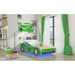 Jednolůžková postel SPEED je ideální volbou pro malé milovníky aut a motorismu. Univerzální LED osvětlení jistě oživí interiér a vytvoří jedinečnou atmosféru v pokoji vašeho dítěte. V procesu výroby byly použity ekologické vodní barvy, které jsou bezpečné a odolné vůči mechanickému poškození. Navíc postel nemá ostré rohy a grafika je chráněna laminátem.