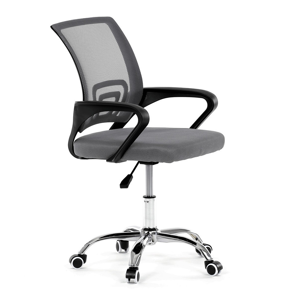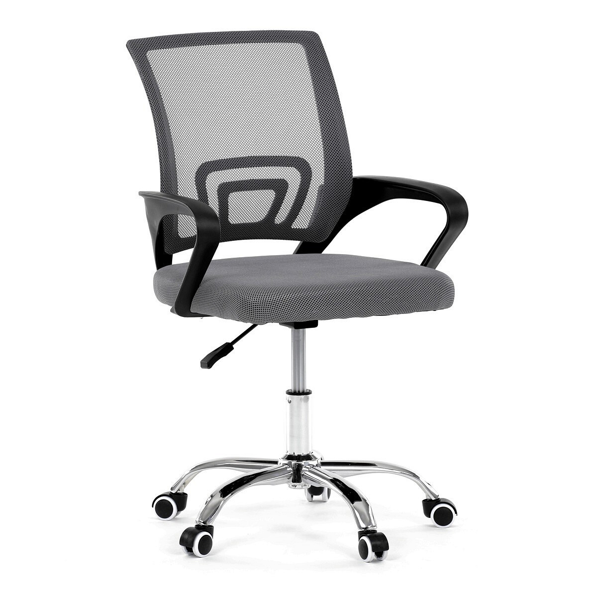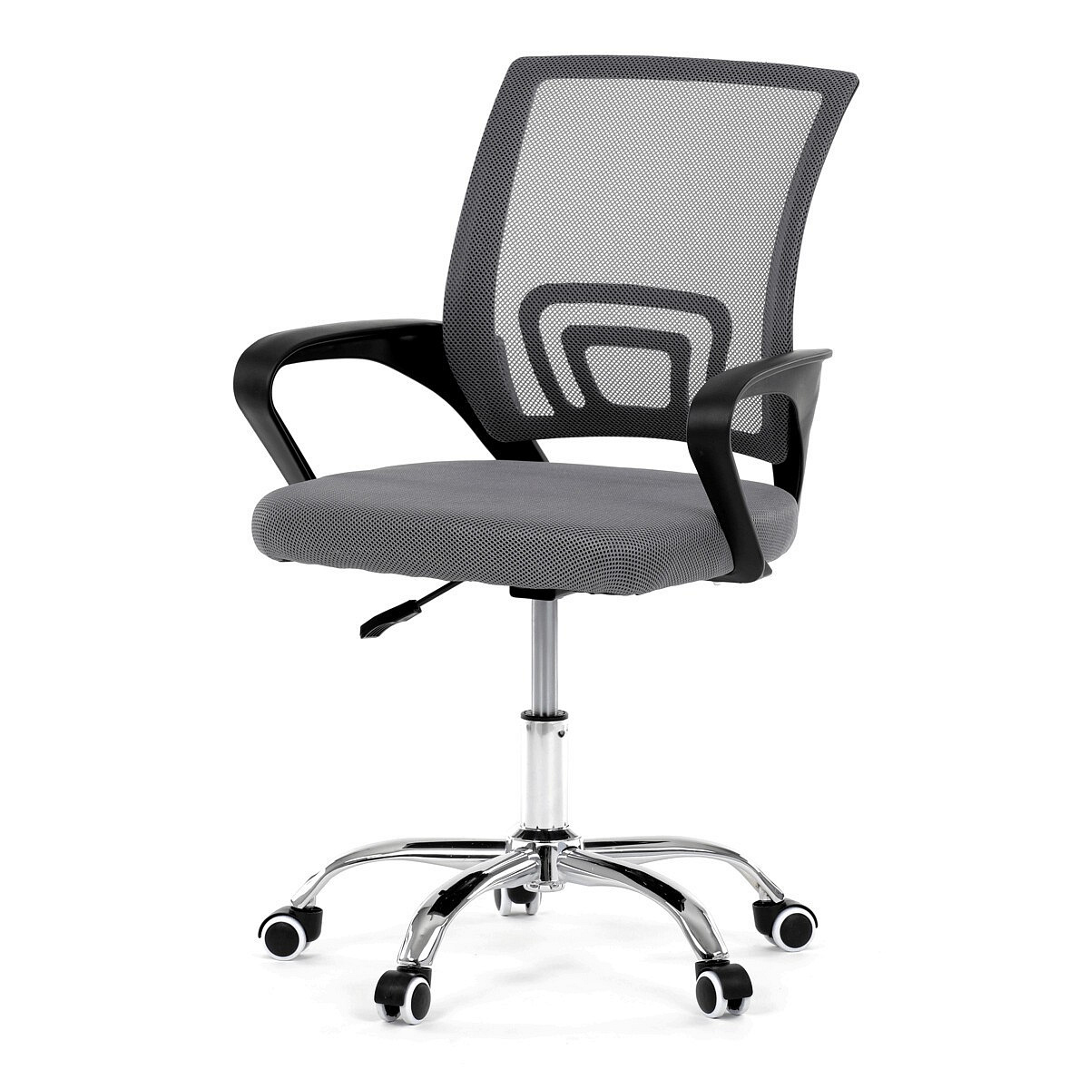 Moderní kancelářská židle značky Autronic nabízí stylový design a pohodlí pro každodenní práci. Opěrák je potažen prodyšnou šedou síťovinou (mesh), která zajišťuje optimální ventilaci a podporu zad. Pevné černé plastové područky poskytují komfort při sezení, zatímco stabilitu židle zajišťuje chromový kříž s kolečky pro snadný pohyb. Díky kombinaci kvalitních materiálů a elegantního vzhledu je ideální volbou do kanceláře i domácí pracovny.