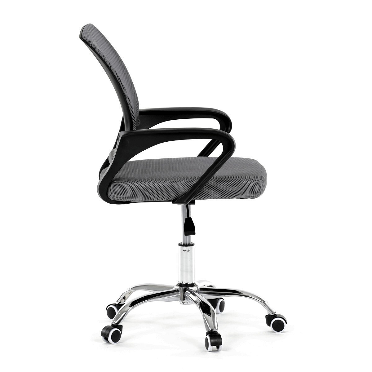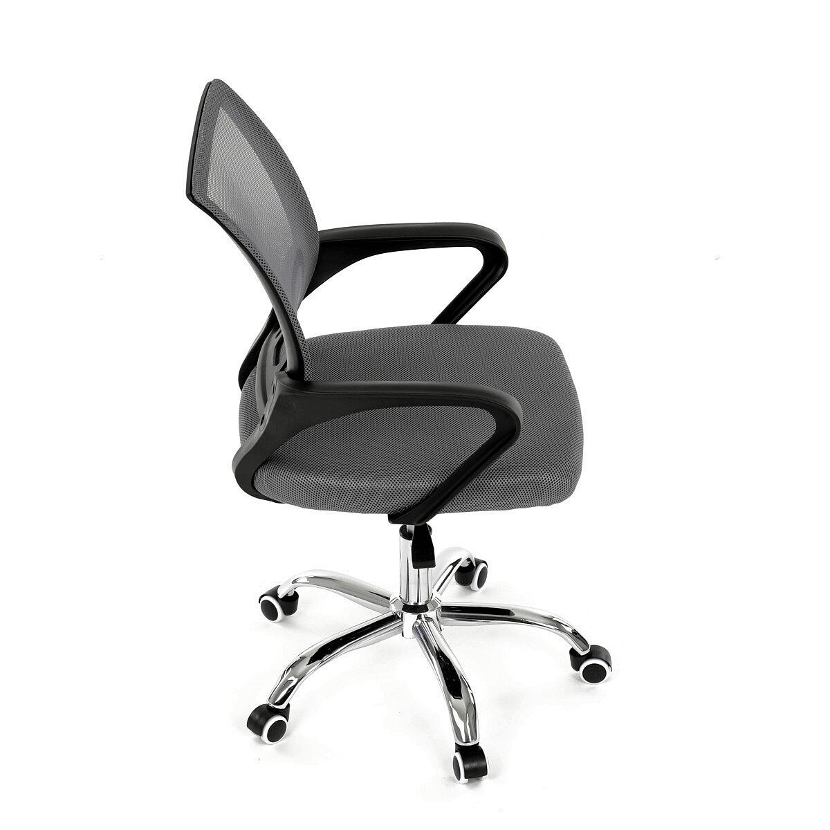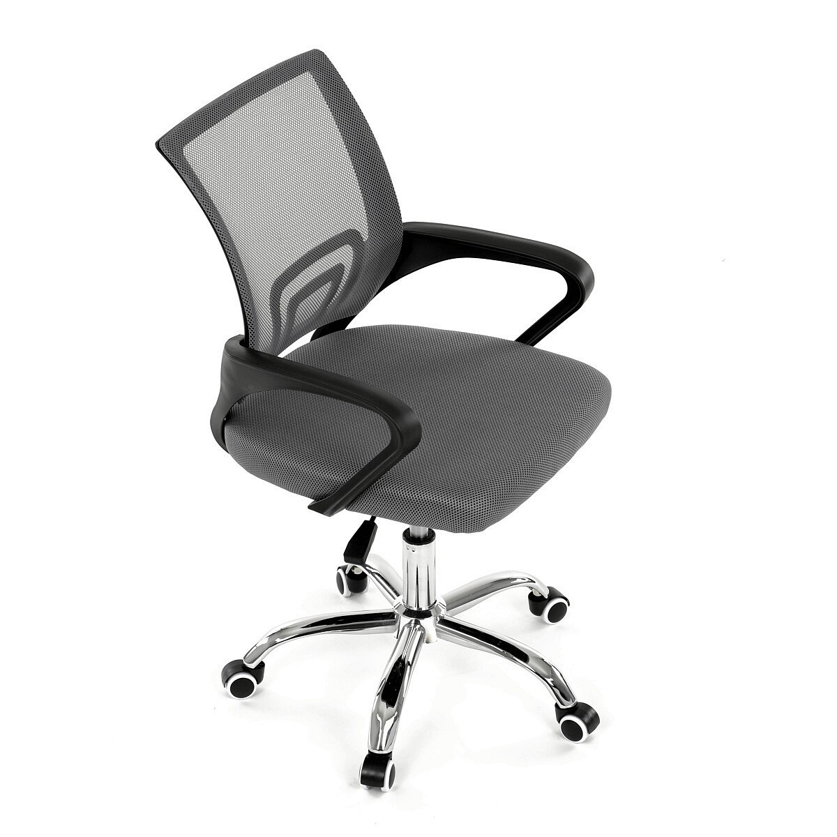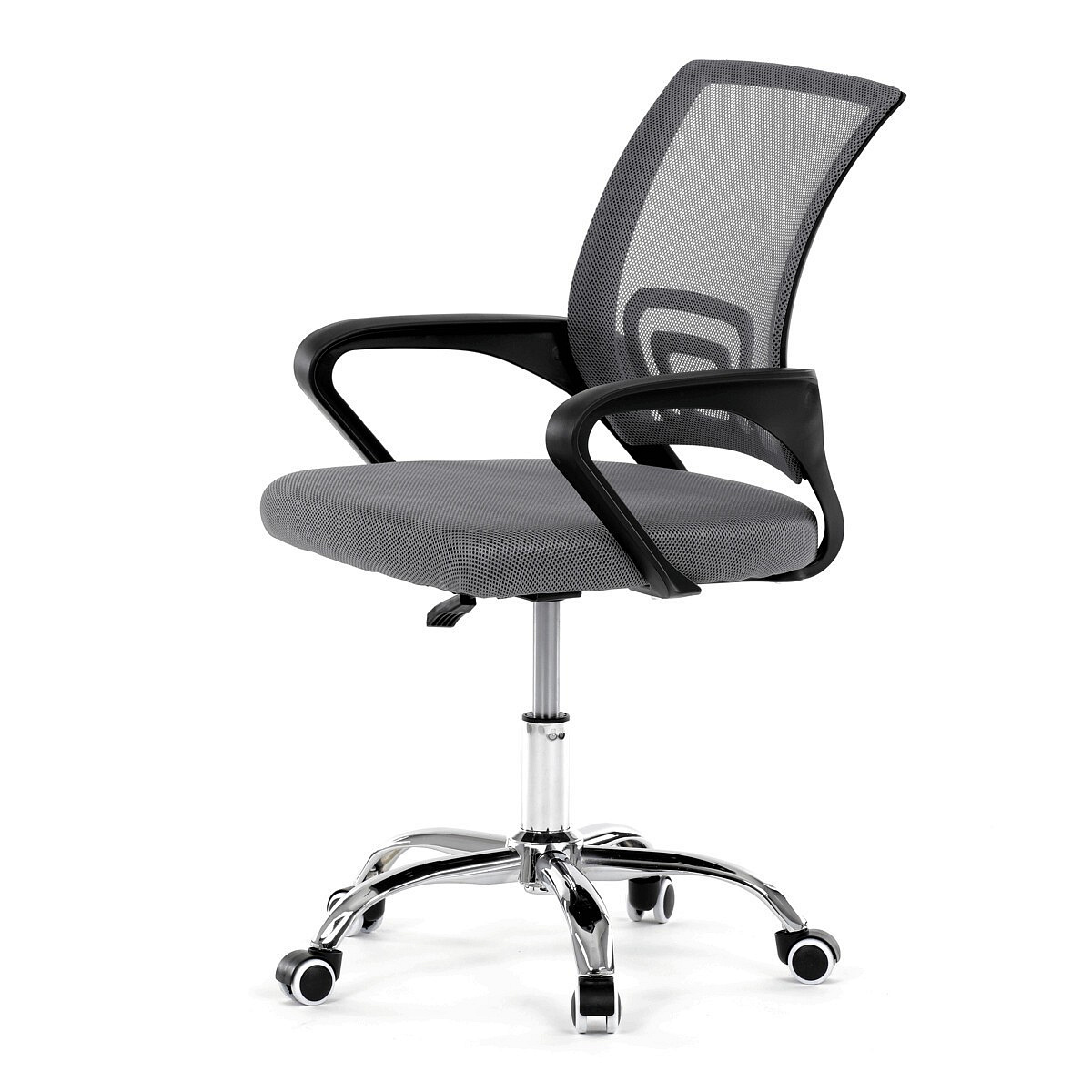 Moderní kancelářská židle značky Autronic nabízí stylový design a pohodlí pro každodenní práci. Opěrák je potažen prodyšnou šedou síťovinou (mesh), která zajišťuje optimální ventilaci a podporu zad. Pevné černé plastové područky poskytují komfort při sezení, zatímco stabilitu židle zajišťuje chromový kříž s kolečky pro snadný pohyb. Díky kombinaci kvalitních materiálů a elegantního vzhledu je ideální volbou do kanceláře i domácí pracovny.
