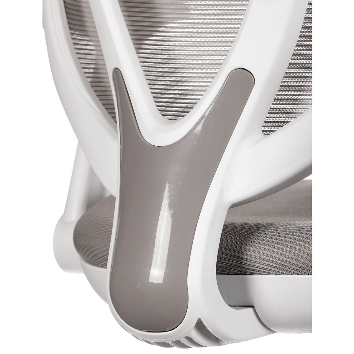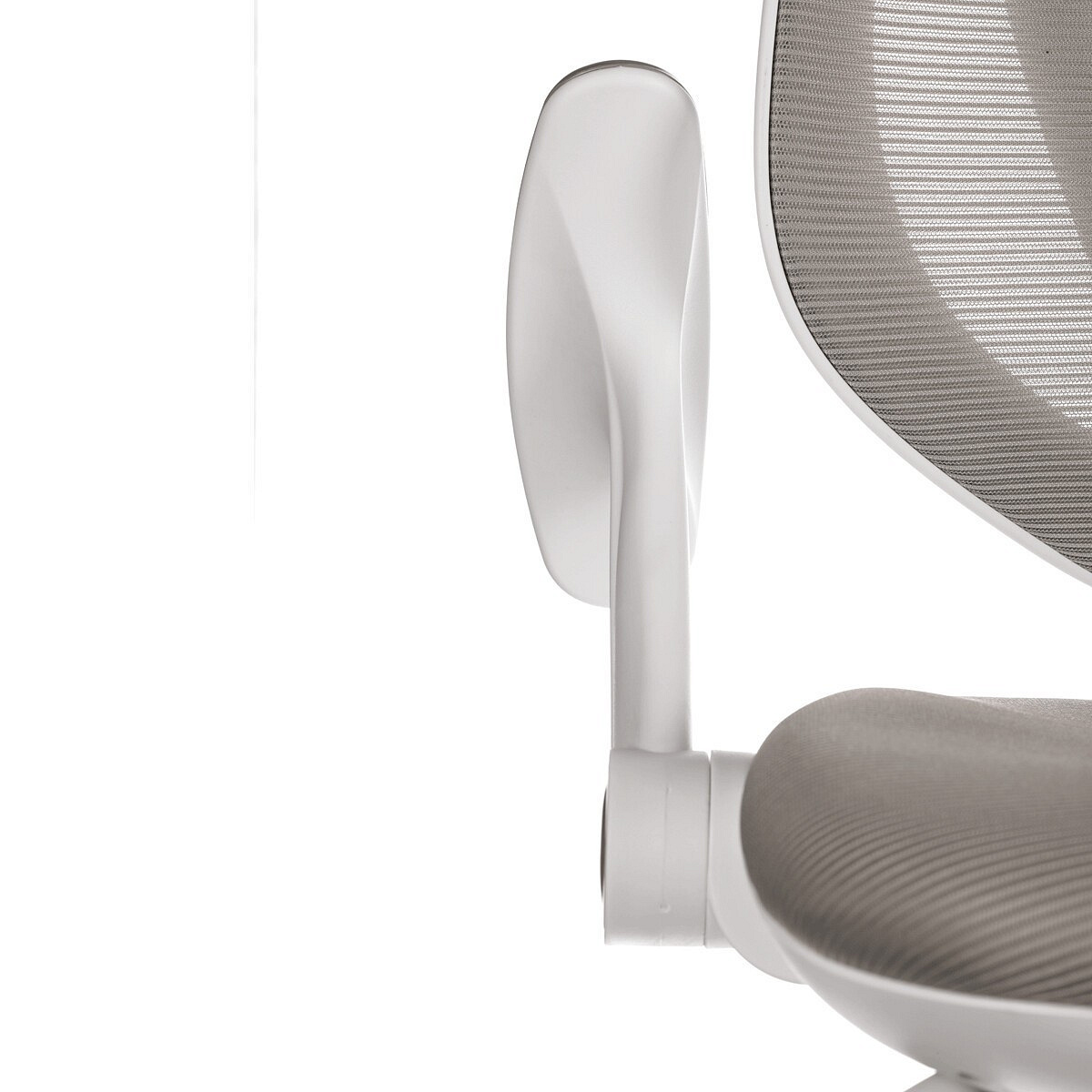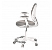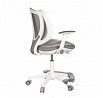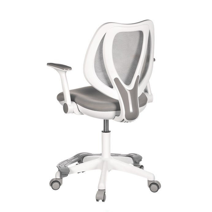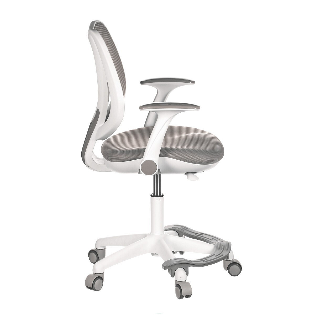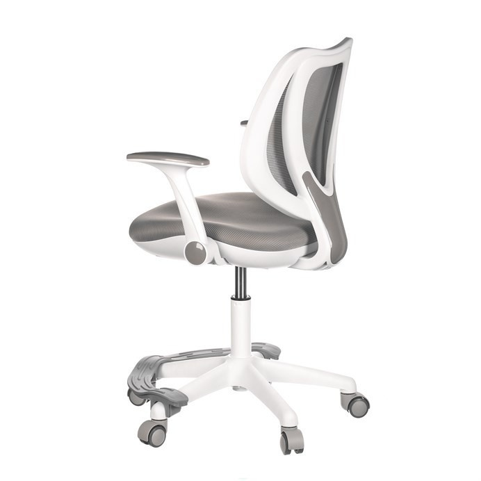 Dětská židle v příjemných pastelových barvách spolu s bílou kostrou nabízí jednoduchý a elegantní design. Židle má pevný opěrák potažený prodyšným síťovaným materiálem. Sedák ve stejném potahu poskytuje dostatek pohodlí díky svému vyměkčení. Pro pocit pohodlí slouží pevné područky, které jsou na své vrchní části opatřeny lesklým plastovým povrchem v barvě potahového materiálu. Důležitá je také integrovaná opěra nohou, která přispívá k pohodlnému sezení. Židle je opatřena speciálními funkčními kolečky, která se při zatížení automaticky zablokují, což zabraňuje nechtěným pohybům židle.