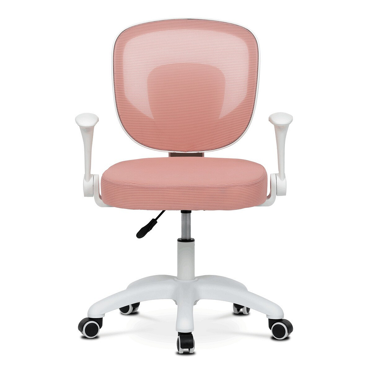 Dětská židle s růžovým síťovinovým potahem nabízí lehké a vzdušné sezení vhodné pro mladší uživatele. Bílý plastový kříž zajišťuje stabilitu a zároveň je odolný vůči běžnému opotřebení, zatímco kolečka jsou přizpůsobena pro použití na tvrdých podlahách, což usnadňuje pohyb bez poškození povrchu. Odklápěcí plastové područky umožňují snadné přizpůsobení prostoru kolem židle. Výškově nastavitelný mechanismus umožňuje individuální nastavení sedáku podle potřeby dítěte, čímž podporuje správnou ergonomii během práce nebo studia. Židle je navržena tak, aby kombinovala funkčnost s příjemným designem vhodným do dětského pokoje.