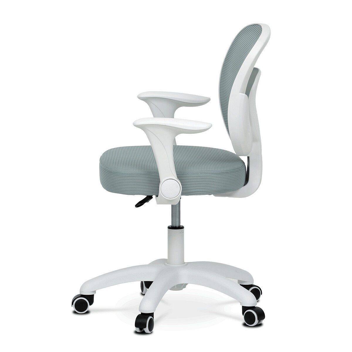 Dětská židle s konstrukcí značky Autronic nabízí kombinaci svěží zelené síťoviny a bílého plastového kříže, který je navržen pro použití na tvrdých podlahách. Sedák je čalouněný příjemnou zelenou látkou, zatímco opěradlo tvoří prodyšná síťovina podporující cirkulaci vzduchu během sezení. Odklápěcí područky umožňují snadné přizpůsobení prostoru a výškově nastavitelný mechanismus zajišťuje ergonomické sezení přizpůsobené dětskému uživateli. Plastový kříž s pěti rameny poskytuje stabilitu a kolečka jsou vhodná pro hladké povrchy, což usnadňuje pohyb židle. Tento model je ideální volbou pro dětské pokoje, kde je kladen důraz na pohodlí i praktičnost.