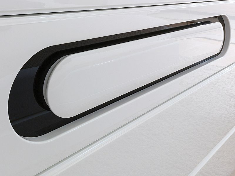 - Čela zásuvek - deska MDF s fólii PVC, úchyt ve tvaru elipsy - černé tvrzené sklo