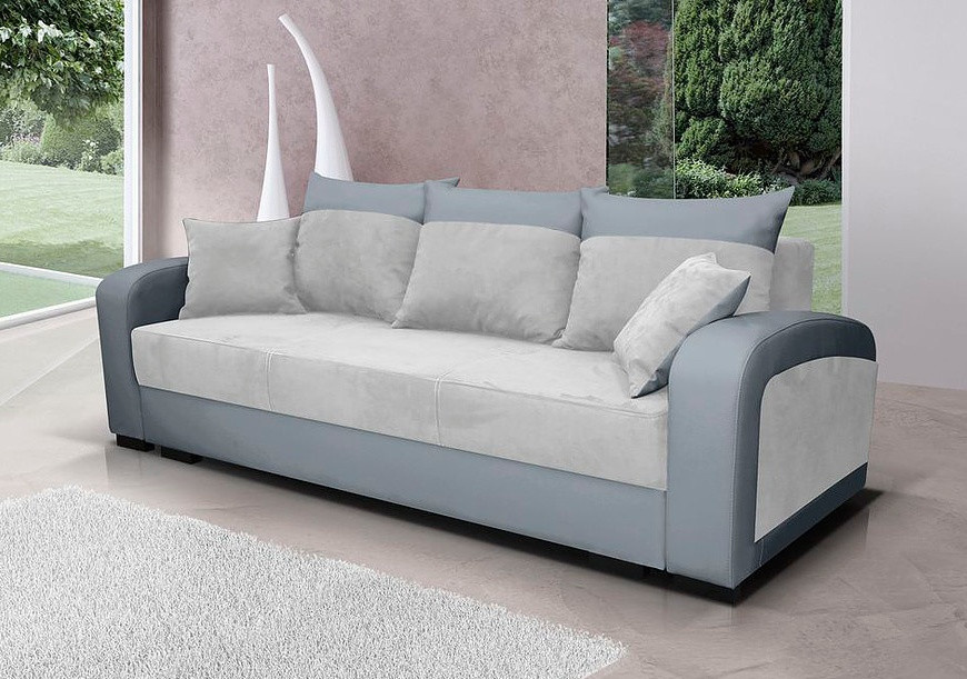 Pohovka Zara vyniká elegancí a pohodlím. Originální vzhled dodává kombinace barev a materiálů. Pohovka je potažena velmi příjemnou látkou v kombinaci s EKO kůží. Pohovka je rozkládací a samozřejmostí je i praktický úložný prostor na lůžkoviny. Výplň sedáku tvoří kombinace pružin bonell s kvalitní PUR pěnou. Jednoduchým rozložením vznikne dostatečně velké lůžko k občasnému přespání. V ceně pohovky jsou tři velké opěrné polštáře a dva melé dekorační polštářky. Ostatní vyobrazené dekorace nejsou v ceně.