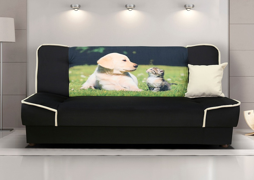 Pohovka Rallye, pes a kočka