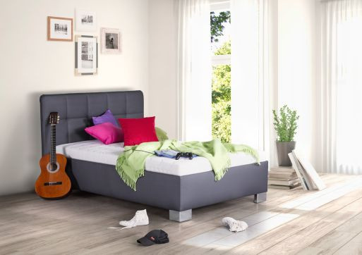 Kelvin je moderní postel s prošívaným čelem a kvalitní sendvičovou matrací, která je volně ložená na polohovacím lamelovém roštu. Je oblíbená hlavně mezi teenagery a je také vhodná do studentských pokojů, nebo pokojů pro hosty. Postel má velký úložný prostor na lůžkoviny, který má přístup od nohou pomocí plynových pístů. Rošt má 28 lamel s nastavením tuhosti a popruh proti přetížení. Plocha pro spaní je 140x200 cm, s výškou lehací plochy cca 53 cm. Doporučená nosnost je do 110 kg. Čelo i korpus postele jsou potaženy EKO kůží, matrace má snímatelný a pratelný potah. Cena postele je uvedena včetně roštu a matrace.