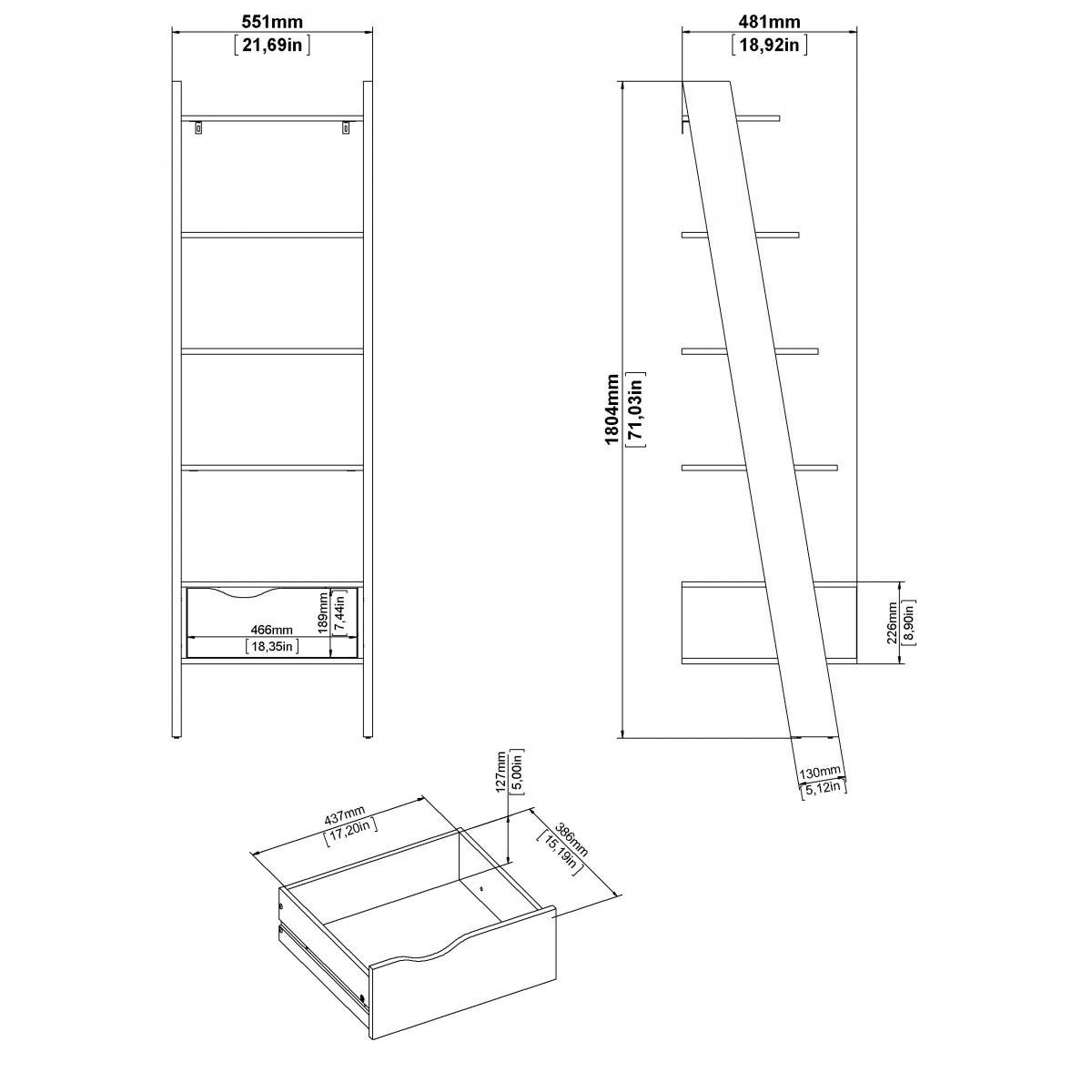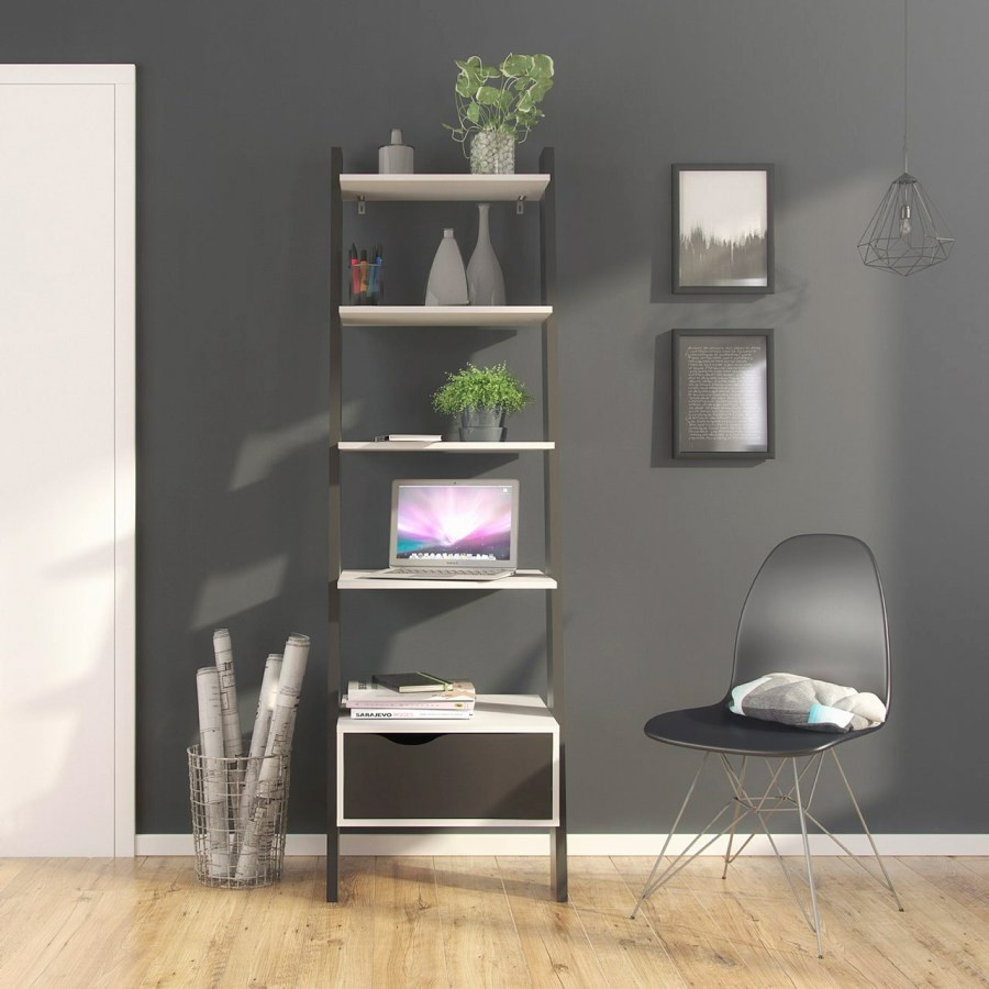 Regál RETRO 385, Bílá/Černá