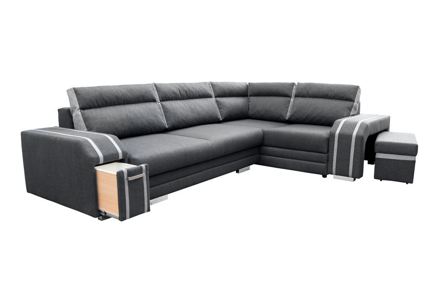 Sedací souprava Avanti osloví každého, kdo preferuje moderní eleganci a zároveň pohodlí a praktičnost. Sedací souprava je rozkládací a má 2 praktické úložné prostory. V jedné područi je důmyslně ukrytý bar a ve druhé područi je taburet s úložným prostorem. Výplň sedáků tvoří kombinace pružin faliste s kvalitní PUR pěnou. Jednoduchým rozkladem pomocí automatu vznikne lůžko vhodné k příležitostnému spaní. Sedací soupravu nabízíme v kvalitní potahové látce se zajímavým lemováním, a to v několika barevných provedeních, které také naleznete v naší nabídce. Vyobrazené dekorace nejsou v ceně.