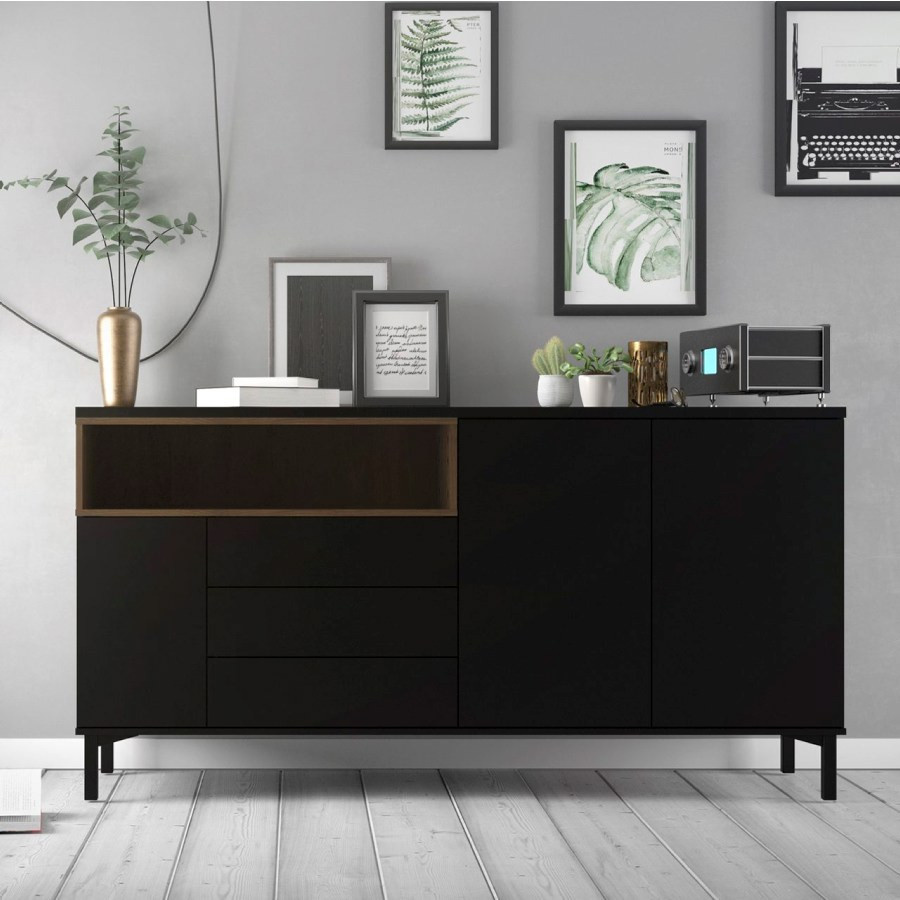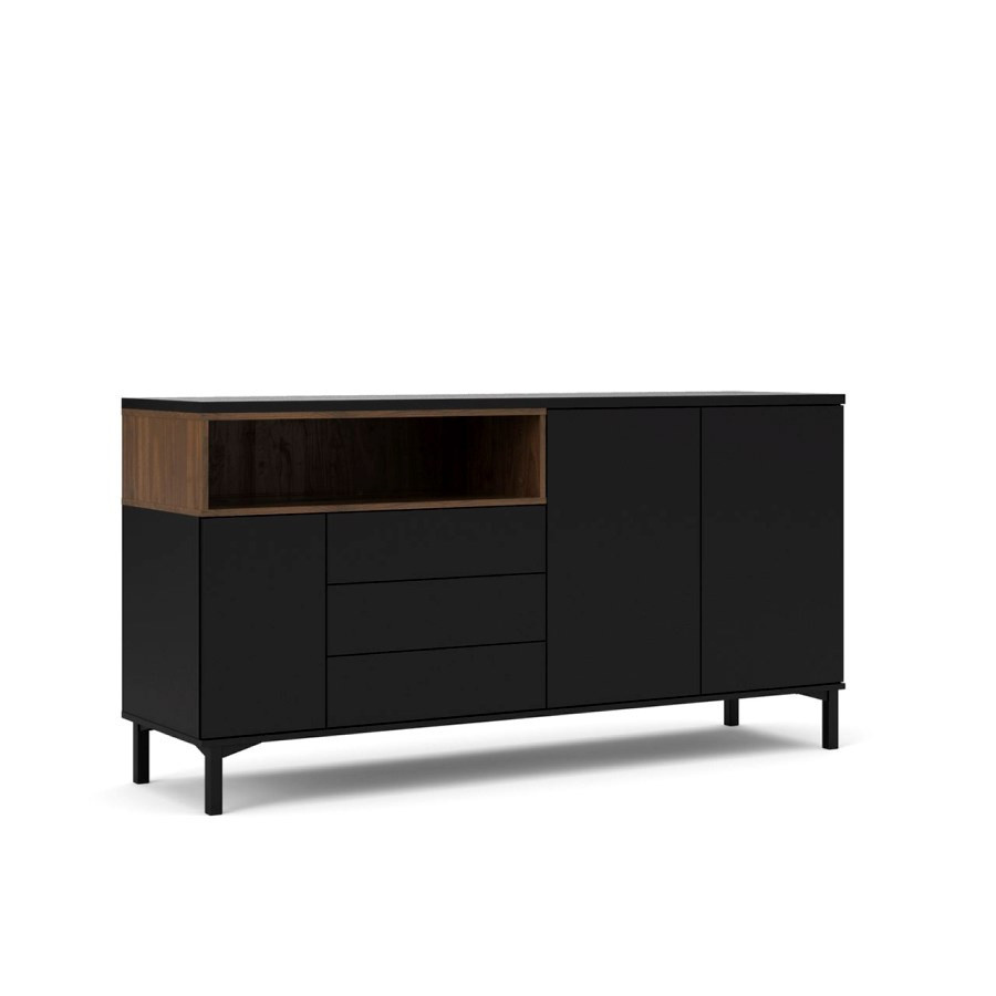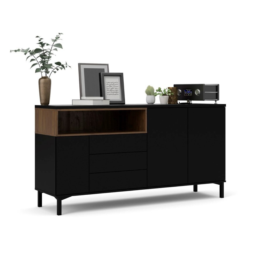 Komoda Atrei potěší nejen milovníky skandinávského designu. Je navržena a vyrobena v nadčasovém designu, který se hodí do každého moderního interiéru. Komoda má kvalitní zpracování a je vyráběna v souladu s ohledy na životní prostředí a navíc je praktická a funkční. Díky svému provedení poskytuje dosatek úložného prostoru. Velmi zajímavá a netypická je kombinace černé nebo bílé barvy s dekorem dřeva. Komodu můžete doplnit dalšími prvky Atrei ve stejném designu, nebo si ji můžete objednat i samostatně a doplnit tak stávající interiér. Komoda je dodávaná v demontu. Součástí balení je schématický montážní návod, včtetně všech potřebných spojovacích prvků. Vyobrazené dopňky a dekorace nesjou v ceně.