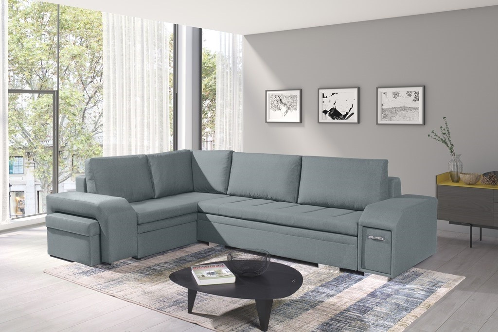 Sedací souprava Alana v sobě spojuje 2 důležité prvky, které nesmí chybět žádné sedací soupravě. Jsou to pohodlí a praktičnost. Praktickou stránkou této sedací soupravy je možnost rozložení pro příležitostné přespání návštěvy a nepostradatelné úložné prostory. Úložný prostor s univerzálním využitím najdete v područi, dále v taburetu, který je možno zasunout do druhé područe a samořejmostí je i úložný prostor v sedací soupravě. Jsou dva a využijete je např. na lůžkoviny. Sedací souprava je celočalouněná, takže je vhodná i k umístění do prostoru. Výplň sedáků tvoří kombinace pružin s kvalitní PUR pěnou. Tato kombinace spolu s velkými opěrnými polštáři, zajišťuje pohodlí. Sedací soupravu nabízíme v levém i pravém provedení v několika trendy barvách. Vyobrazené doplňky a dekorace nejsou v ceně. Vzorek látky, ve které bude sedací souprava dodána, je vyobrazen v doplňkových fotografiích.