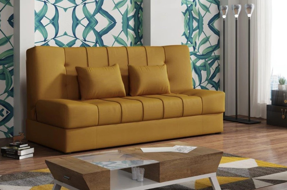 Pohovka Sun je příjemným spojením elegance, funkčnosti a atraktivní ceny. Skvěle doplní design Vašeho obývacího pokoje, ale je také vhodná např. do studentského pokoje, pracovny, nebo hostinského pokoje. Pohovka je rozkládací. Jednoduchým rozložením pomocí systému klik klak, získáte lůžko k občasnému přespání Vaší návštěvy. Samozřejmostí je i praktický úložný prostor, který můžete využít třeba na lůžkoviny. Pohovku nabízíme v několika trendy barevných provedeních. V ceně pohovky jsou 2 dekorační polštářky. Ostatní vyobrazené doplňky a dekorace nejsou v ceně. Zobrazení barev produktu na fotograii se může nepatrně lišit od skutečnosti.