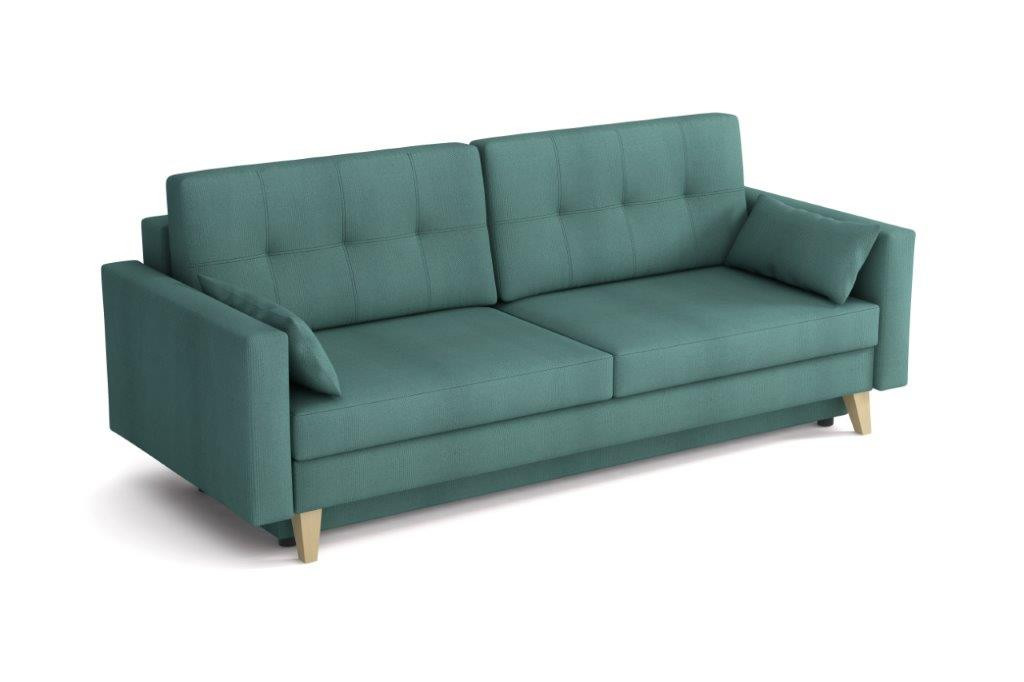 Pohovka Marina je krásným elegantním kouskem s nádechem RETRO designu a výborně zapadne do každého interiéru. Retro design podtrhují zešikmené dřevěné nohy a látkové knoflíky na opěrce. Pohovka je rozkládací a samozřejmostí je i nepostradatelný úložný prostor. Jednoduchým rozložením pomocí automatu vznikne dostatečně prostorné lůžko občasnému přespání Vaší návštěvy. Výpň sedáku tvoří vlnité pružiny v kombinaci s pružinami bonell a kvalitní PUR pěnou. Pohovka je celočalouněná, takže ji můžete umístit i do prostoru. Výborně se hodí do obývacího pokoje, do pracovny či pokoje pro hosty. Pohovku nabízíme v několika trendy barvách. Vyobrazené dopňky a dekorace nejsou v ceně. Zobrazení barev produktu na fotograii se může nepatrně lišit od skutečnosti.