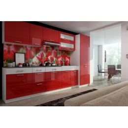 Kuchyňská linka Sanader 300 červený lesk/bílý pruh