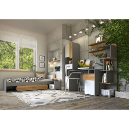 Dětský pokoj CARINI 1 mini, světlý grafit/bílá briliantová/dub nash