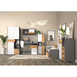 Dětský pokoj CARINI 2 mini, světlý grafit/bílá briliantová/dub nash