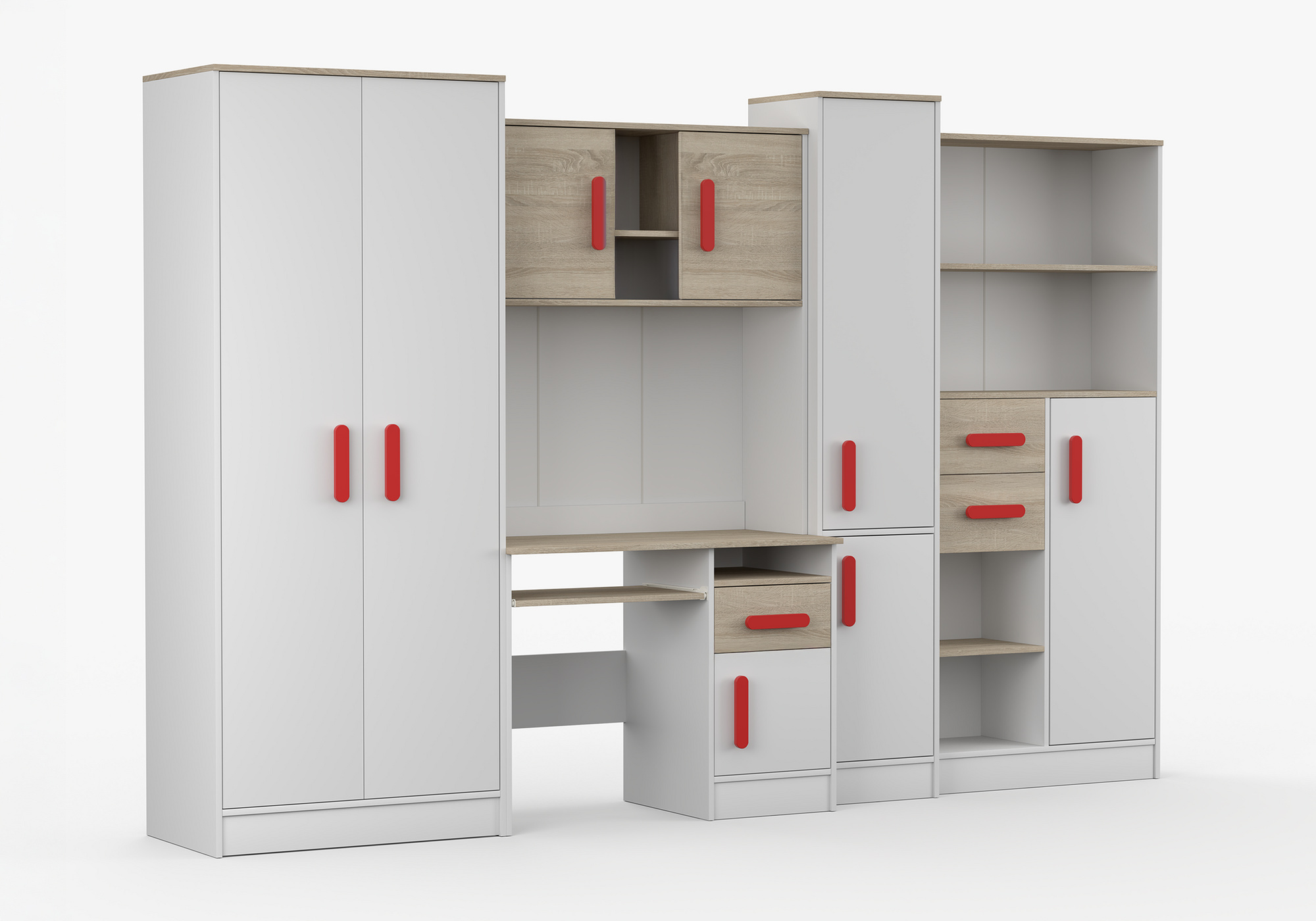 Dětský pokoj MACIUS, Bílá Mat/Dub Sonoma/Červená