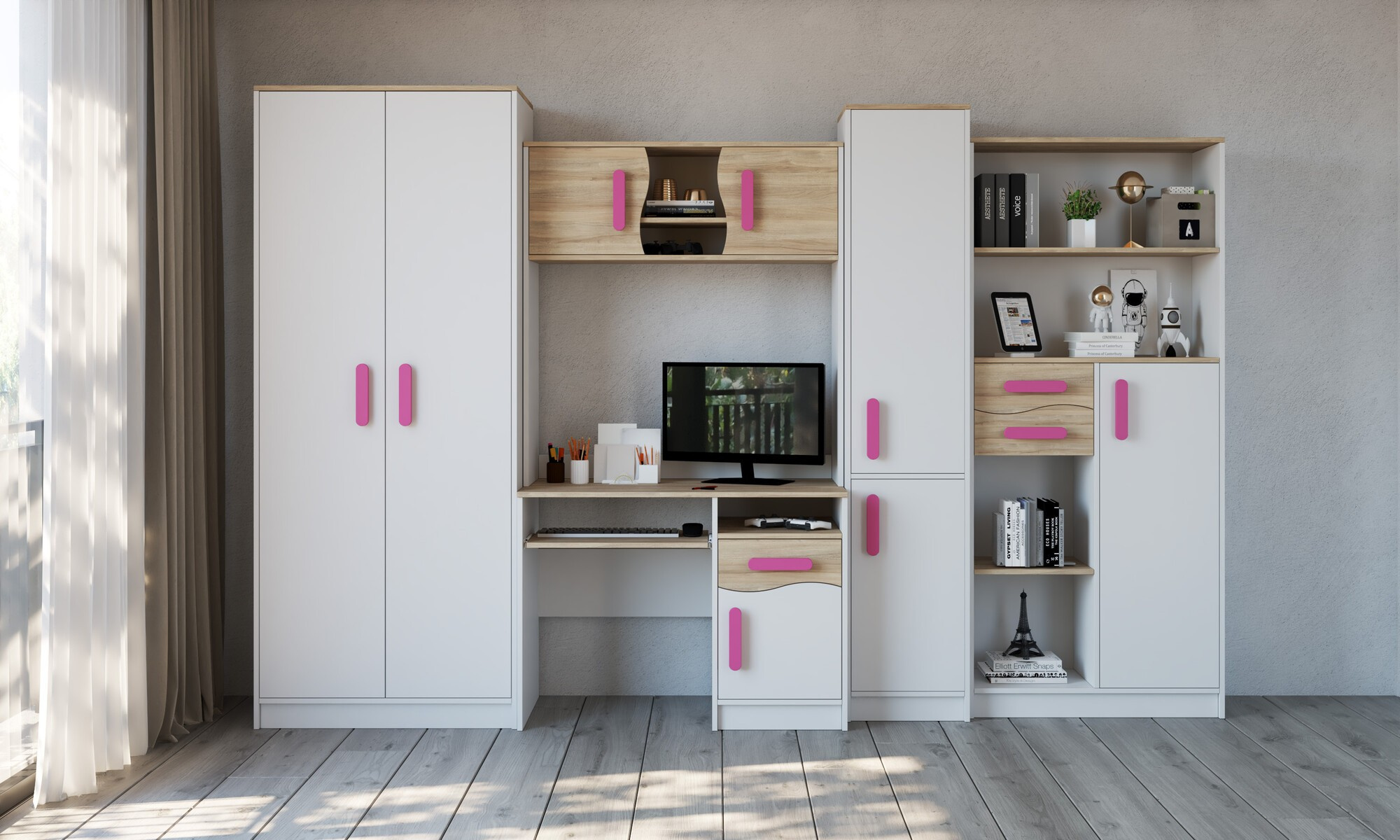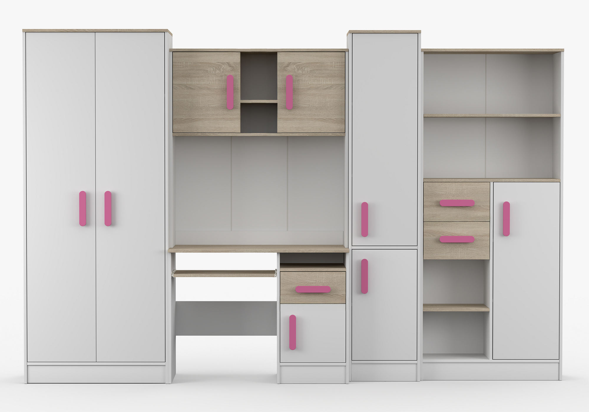 Dětský pokoj MACIUS, Bílá Mat/Dub Sonoma/Růžová