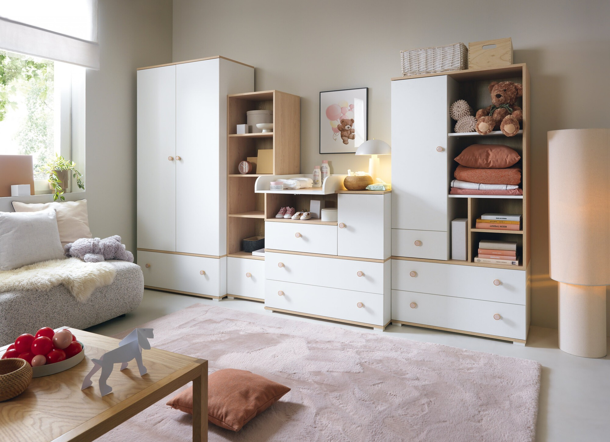 - NICO - Světlý Dub/Bílá/Růžová
