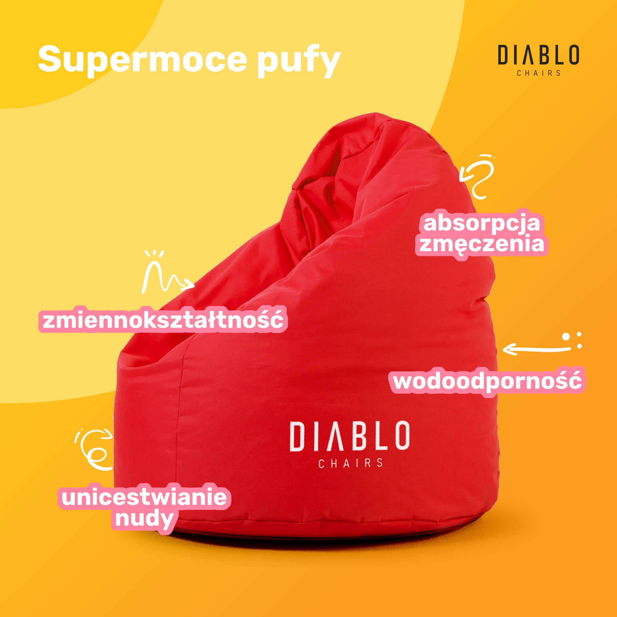 Stylový design: Červená barva sedacího vaku dodá dětskému pokoji energii a radost. Moderní design s logem Chairs se bude skvěle hodit do každého interiéru.