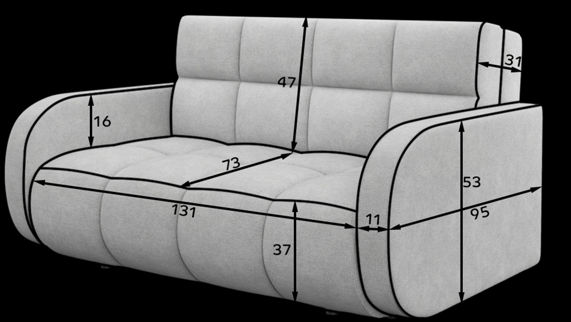 Další skvělou vlastností je možnost rozkládání. Pohovka se snadno promění v pohodlné lůžko s plochou na spaní o rozměrech 131 x 203 cm. Tato funkce je ideální pro hosty, kteří u vás zůstanou přes noc, nebo pro ty, kteří si rádi dopřejí odpolední siestu.