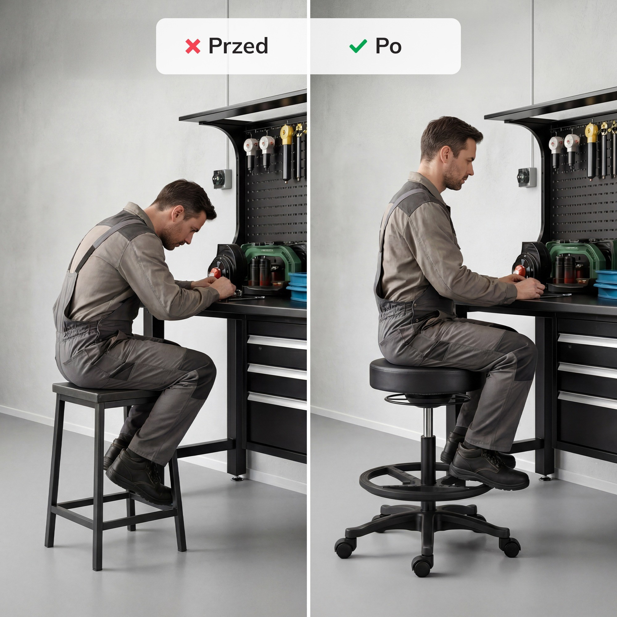Už žádné kompromisy mezi pohodlím a efektivitou! Představujeme Vám revoluční dílenskou stoličku na kolečkách, navrženou pro ty, kteří tráví dlouhé hodiny prací v dílně, laboratoři, ordinaci nebo kanceláři. Zapomeňte na bolesti zad a únavu – s touto stoličkou získáte dynamické sezení, které podpoří Vaše zdraví a zvýší Vaši produktivitu.