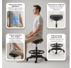 Rozsah nastavení výšky od 582 do 795 mm Vám umožní přesně přizpůsobit stoličku Vaší výšce a úrovni pracovní desky. Regulace probíhá plynule a židle se během několika sekund přizpůsobí Vaší aktuální pozici. Stolička je vhodná pro klasický psací stůl, pracovní desku i ergonomická pracoviště sit-stand. Podnožka odlehčuje lýtka a kolena, zvyšuje pohodlí během delších sezení a zabraňuje otokům nohou.