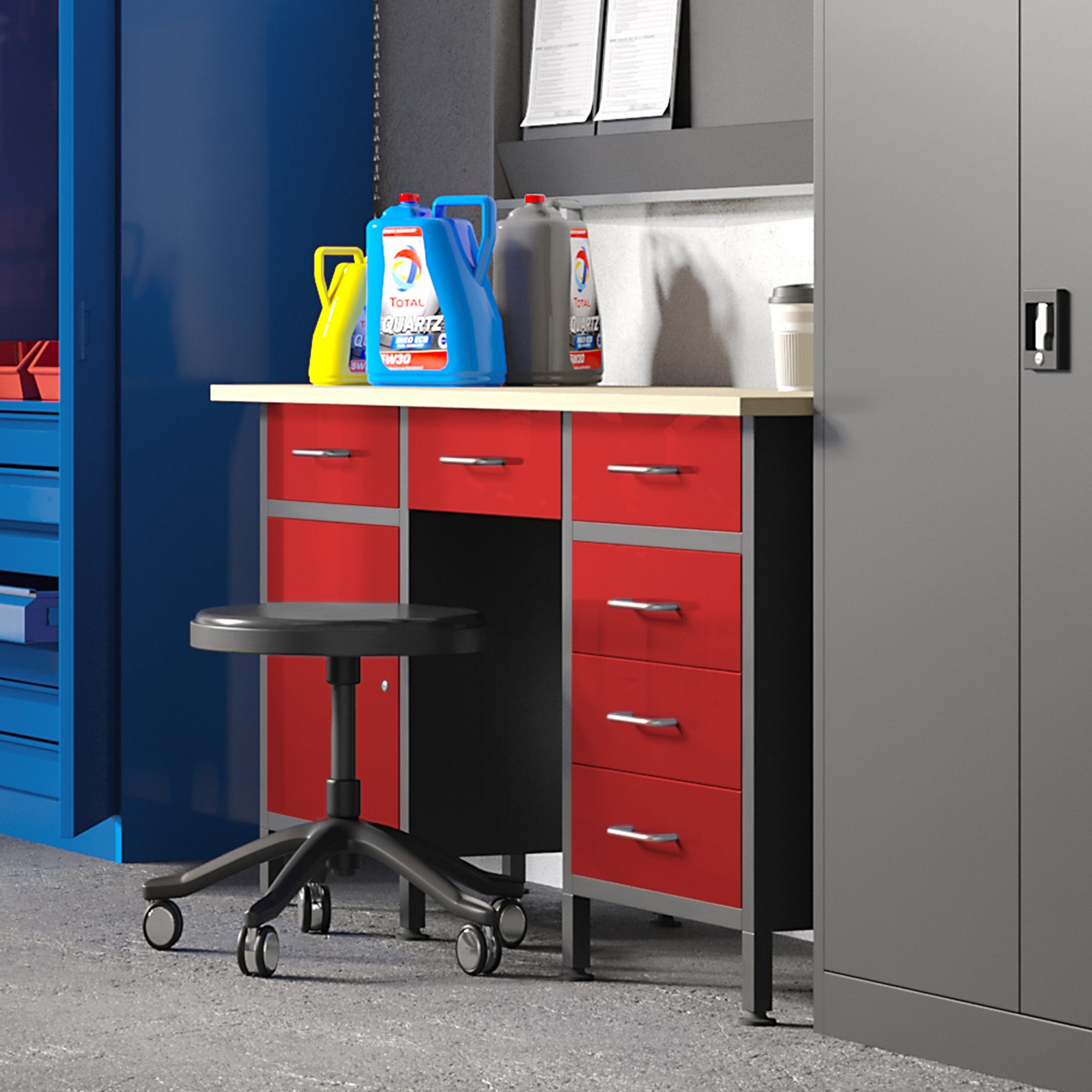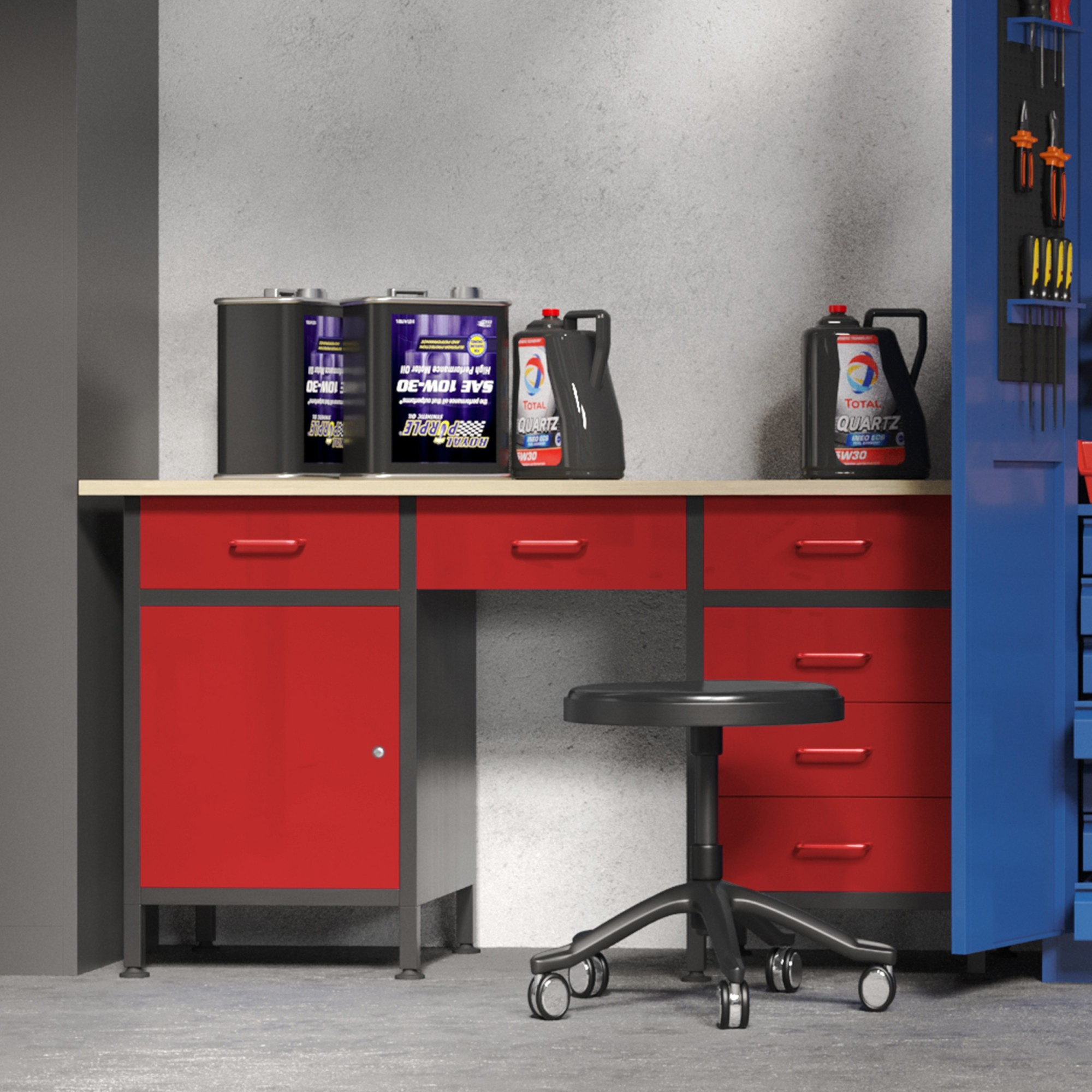 - Moderní design: Antracitově-červená barva se hodí do každé dílny.
