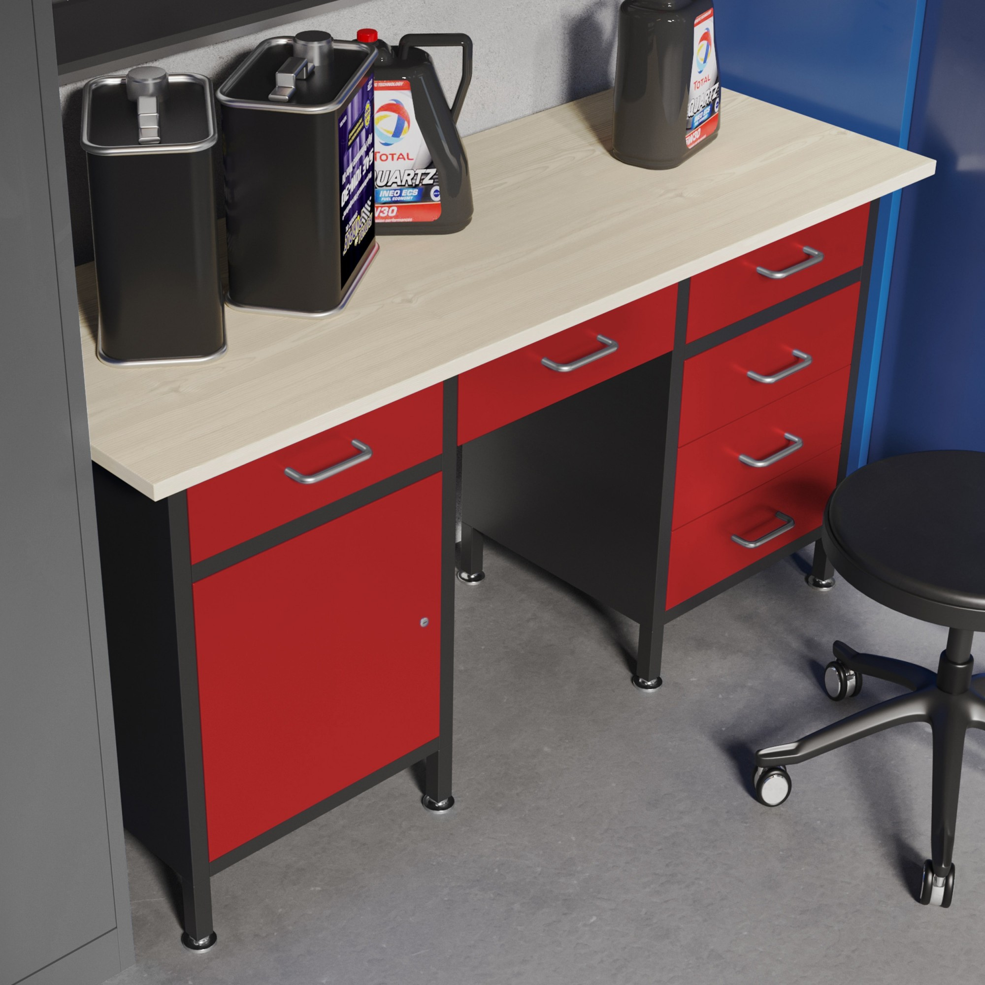 Udržet si pořádek v dílně je klíčové pro efektivní práci. Proto je stůl FRANK vybaven šesti prostornými zásuvkami a uzamykatelnou skříňkou. Do zásuvek si můžete uspořádat nářadí, spojovací materiál a další drobnosti, které potřebujete mít po ruce. Skříňka s klíčem pak poslouží k bezpečnému uložení cennějších nástrojů nebo rozpracovaných projektů. Díky promyšlenému uspořádání úložných prostor budete mít vše potřebné vždy na dosah.