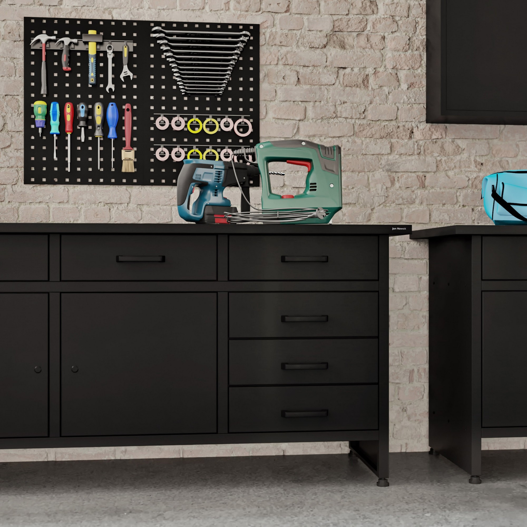 Kdo říká, že dílenský stůl nemůže být stylový? Dílenský stůl HENRY v celočerném provedení je důkazem, že i pracovní nástroj může být designovým kouskem. Jeho moderní a minimalistický vzhled se hodí do každé dílny, ať už preferujete industriální styl nebo moderní minimalismus. Černá barva je navíc praktická, protože snadno skryje drobné nečistoty a škrábance, které se v dílně nevyhnutelně objeví. S tímto stolem se budete cítit hrdě a vaše dílna získá profesionální a uspořádaný vzhled.