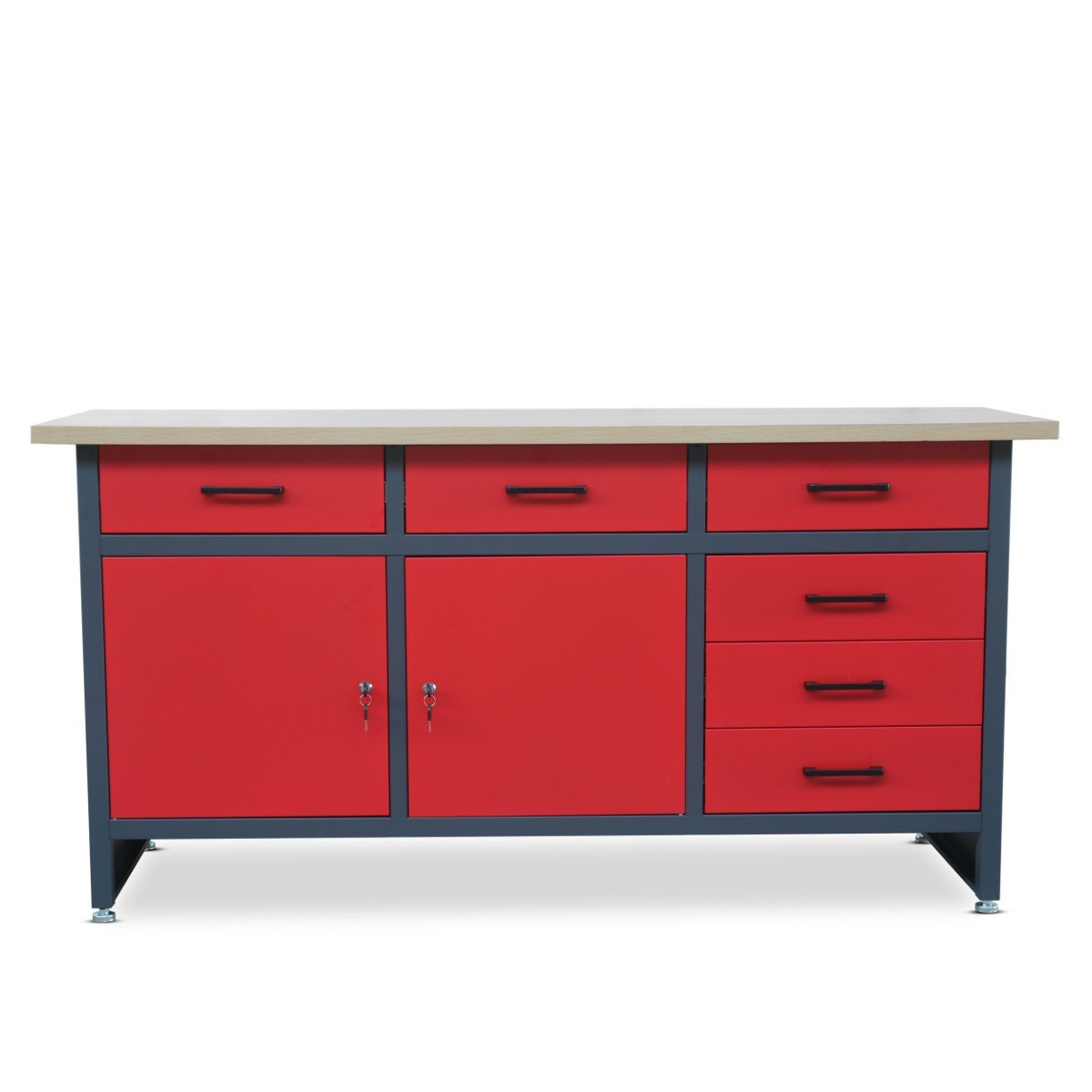 Dílenský stůl HENRY – Antracitově-červený: Král vaší dílny