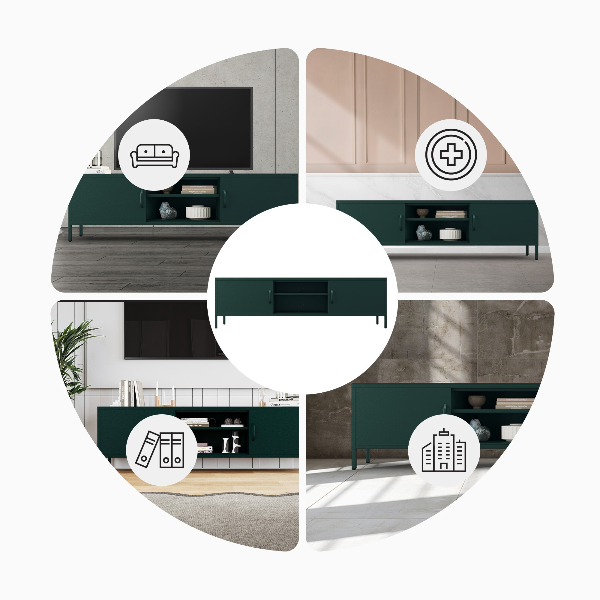 Dlouhá TV skříňka XL lahvově zelená ROSARIA 1700 x 400 x 500