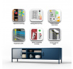 - Praktické uspořádání: Dvě boční komory s kovovými dvířky a otevřená středová přihrádka nabízejí dostatek prostoru pro veškerou vaši elektroniku a příslušenství.