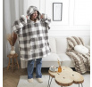 Dlouhá zateplená mikina/snudie v kostce šedá/bílá