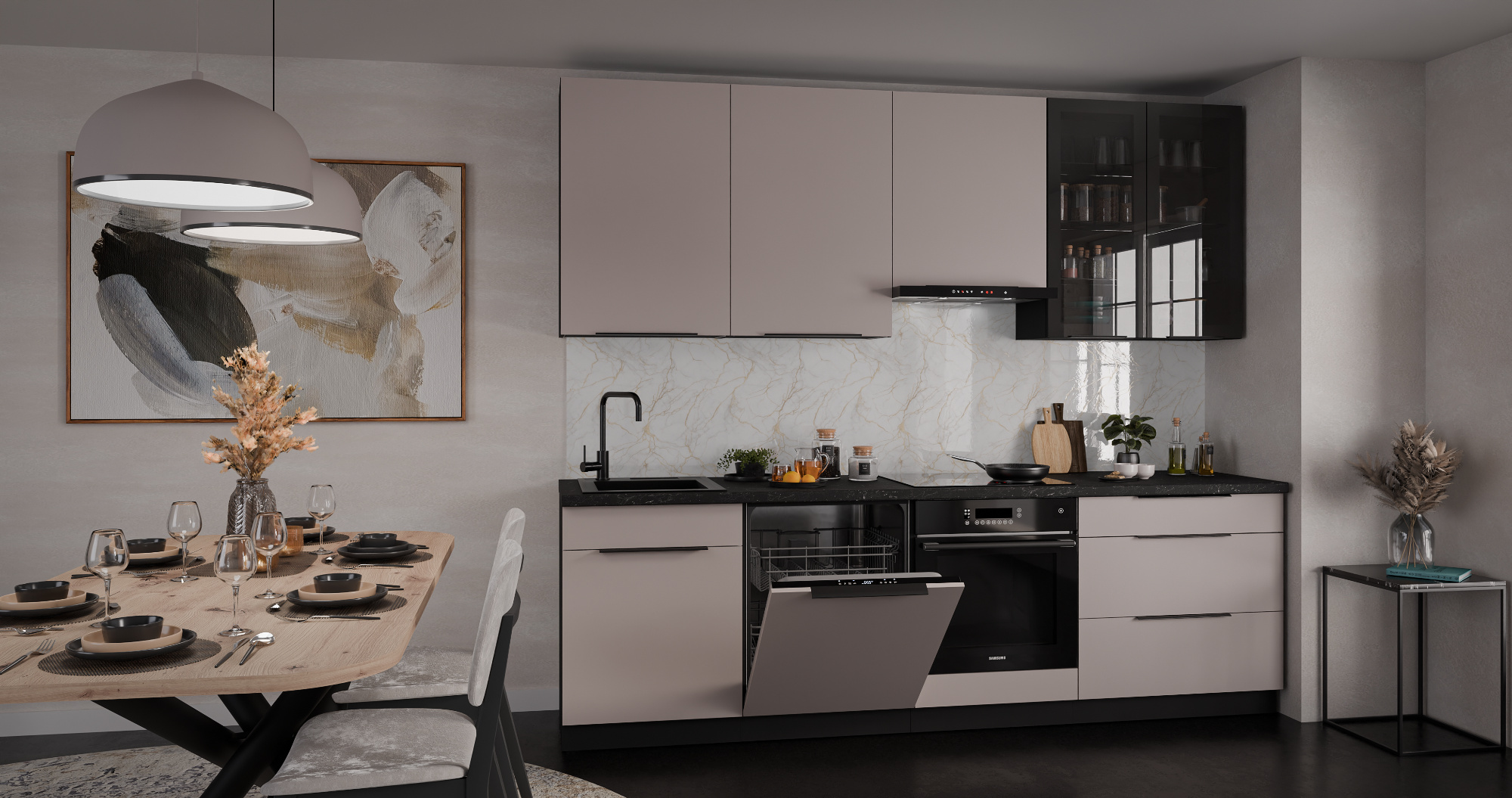 - Dvířka a čela šuplíků jsou vyrobeny z LTD desky výšky 16 mm v barvě Kašmír