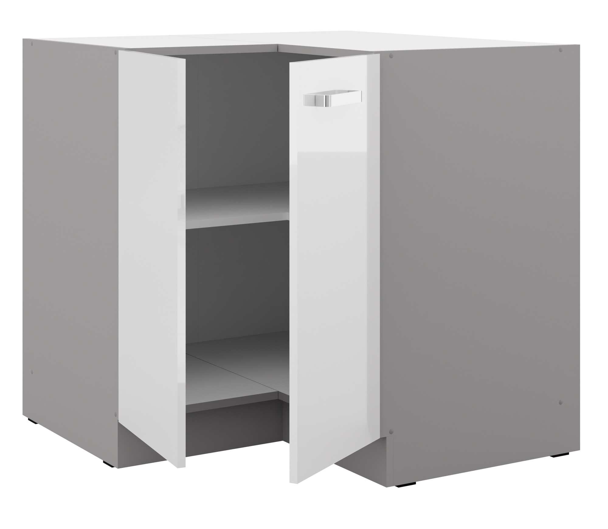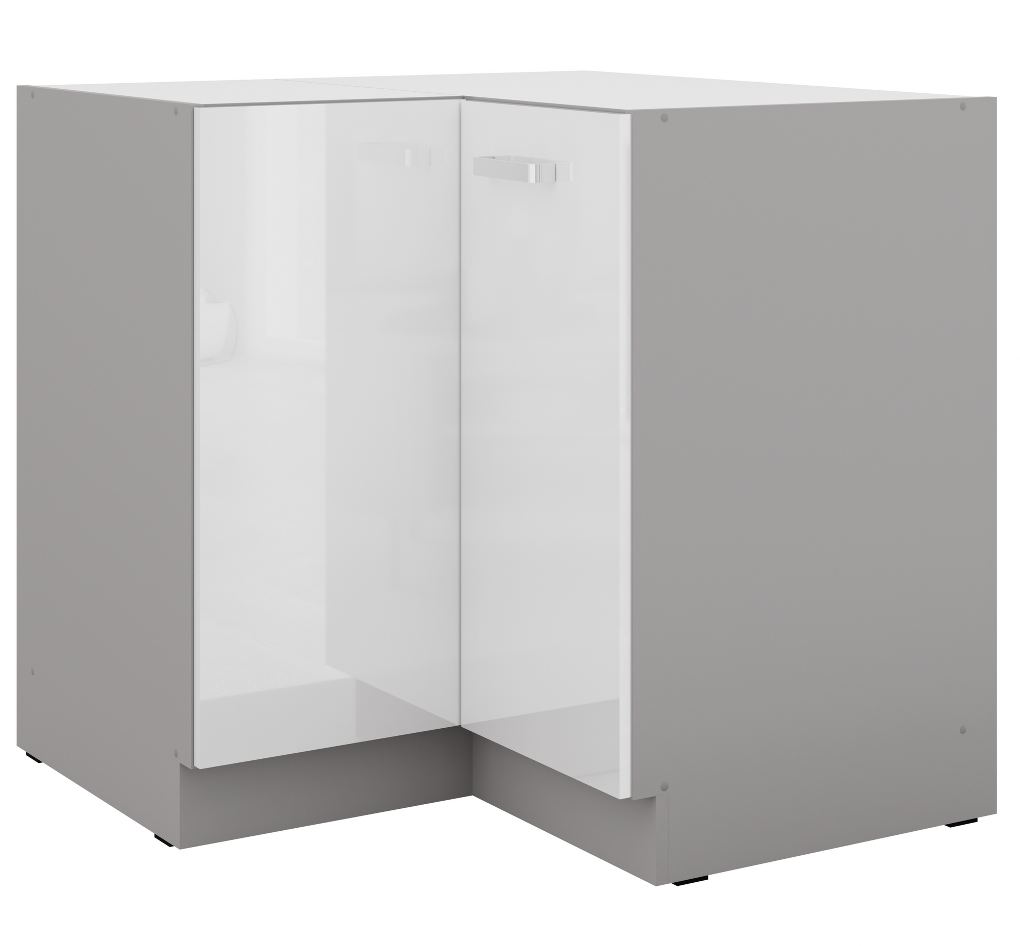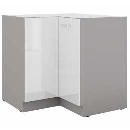 Dolní rohová skřínka BIANCA - 90 x 90 ND 2F BB, Šedá / Bílý lesk