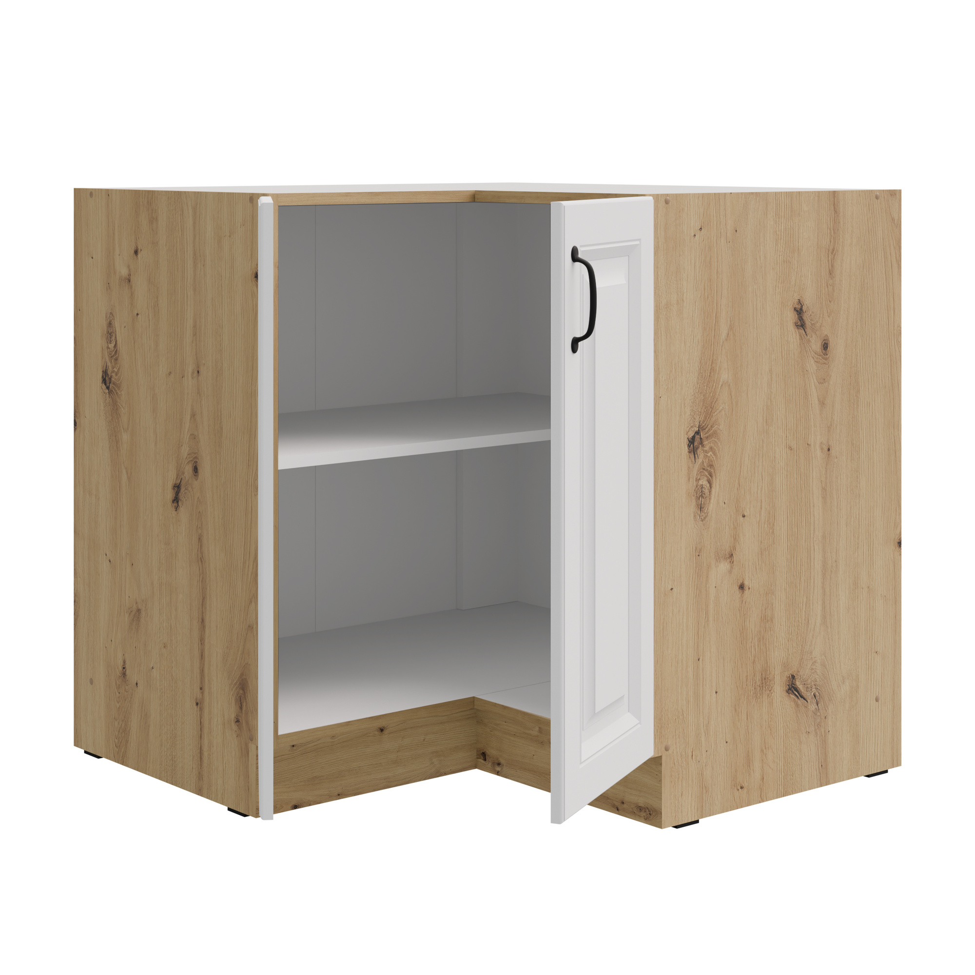 Dolní rohová skříňka STELLO - 90x90 DN 2F BB, Dub Artisan/Bílý mat