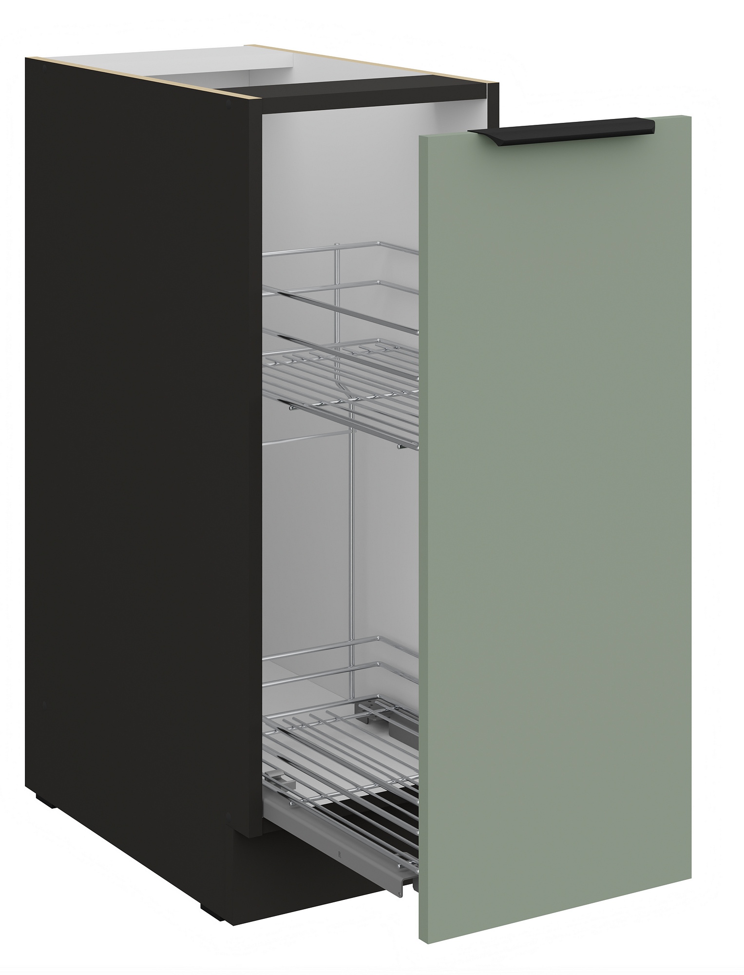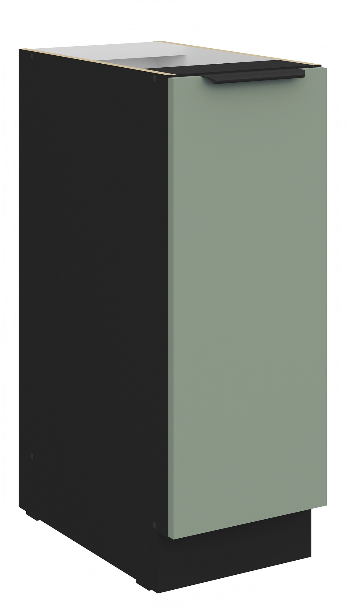 Kuchyně ARIA je vyrobena z vysoce kvalitního lamina o tloušťce 16 mm, které je zpracováno v elegantní černé barvě. Tento sofistikovaný vzhled je doplněn dvířky a čely šuplíků v barvě Aquamarine AFM, které jsou opatřeny odolnými ABS hranami. Kombinace černé barvy a Aquamarine odstínu dodává skřínce luxusní vzhled, který se hodí do každé moderní kuchyně.