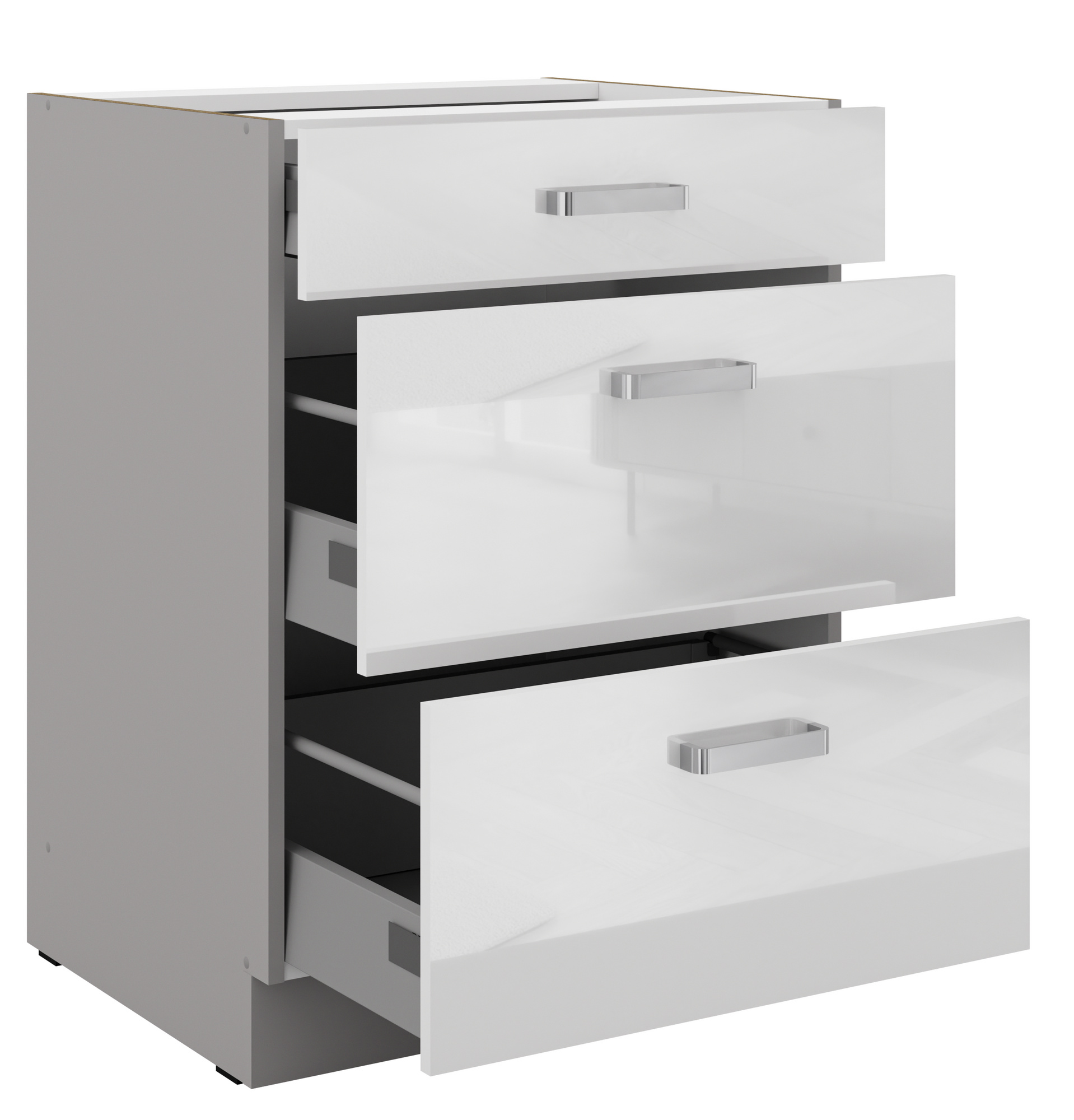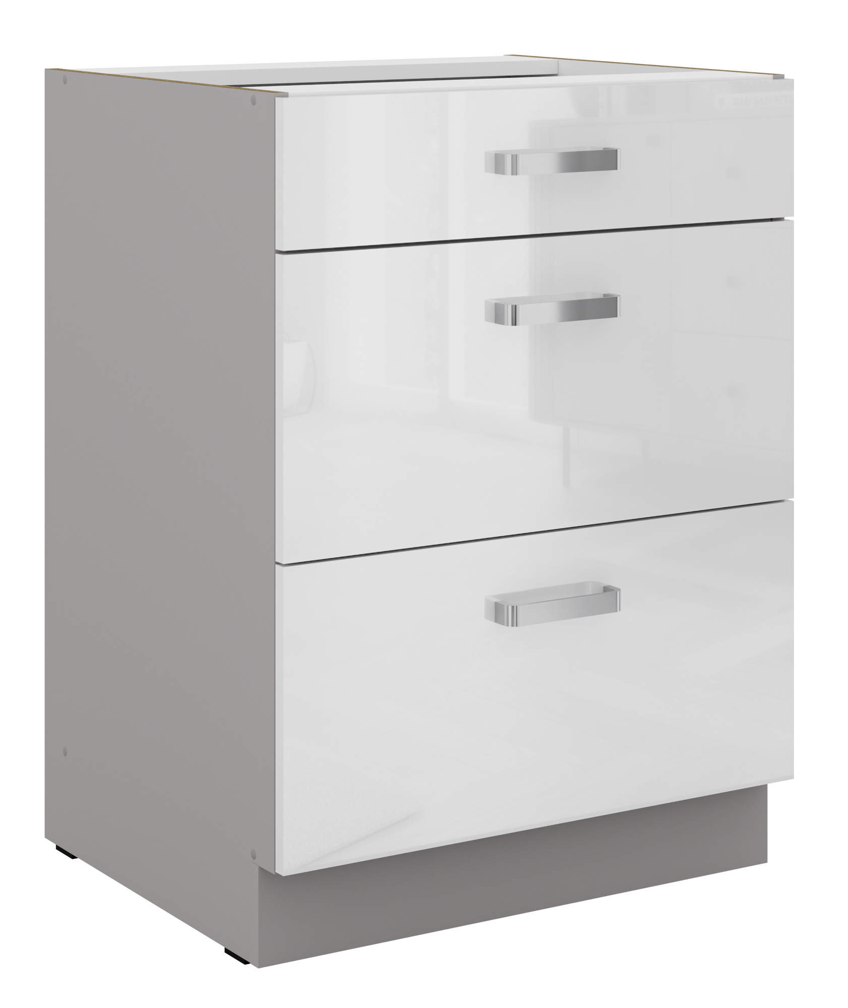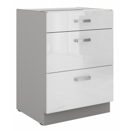 Dolní skřínka BIANCA - 60 D 3S BB, Šedá / Bílý lesk