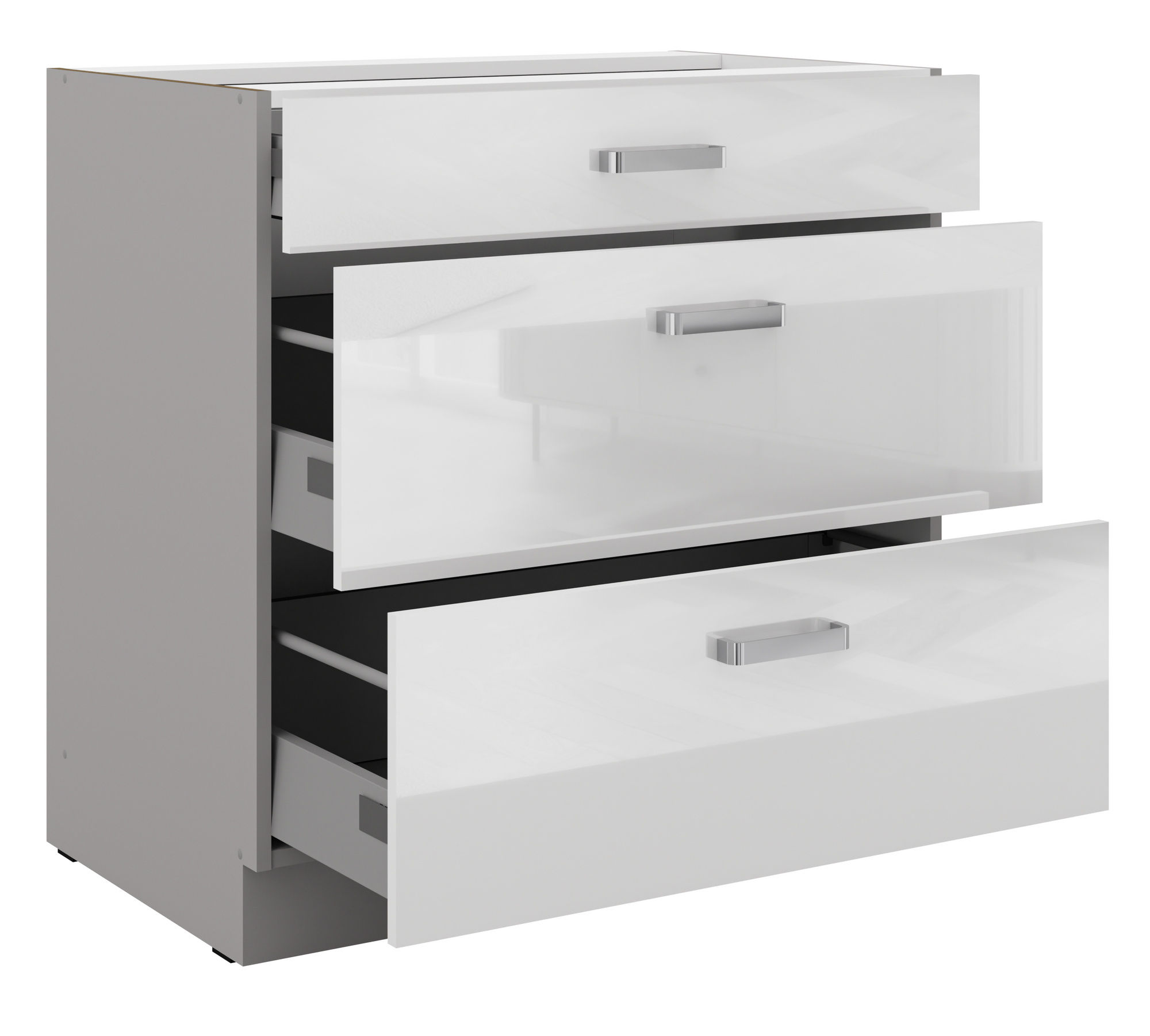 Dolní skřínka BIANCA - 80 D 3S BB, Šedá / Bílý lesk