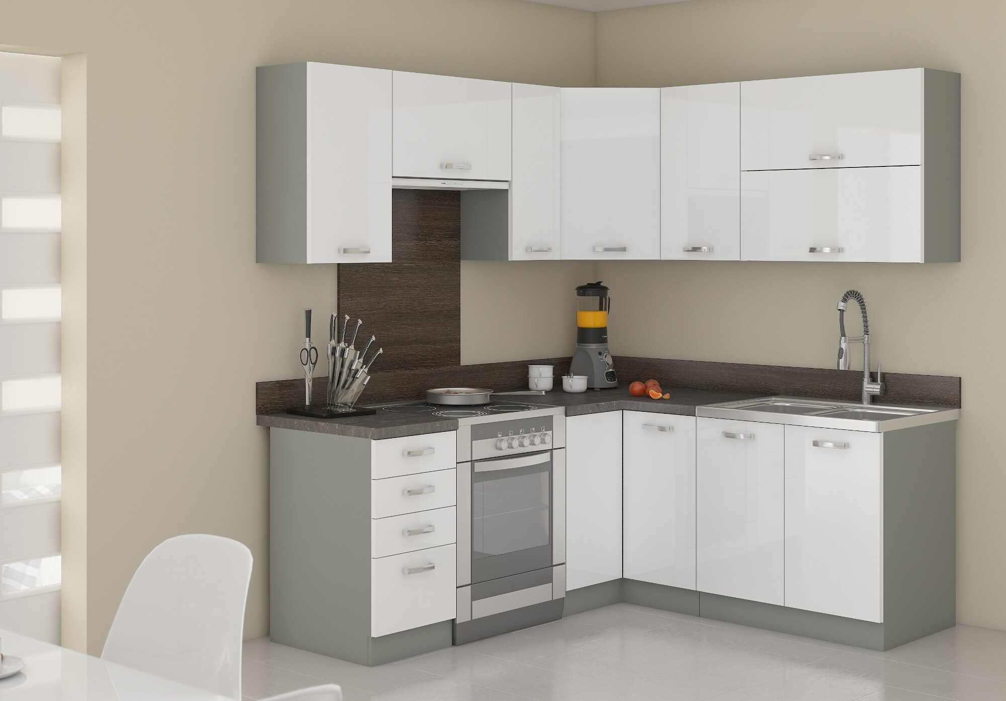 - Kuchyně BIANCA - Šedá/Bílý Lesk