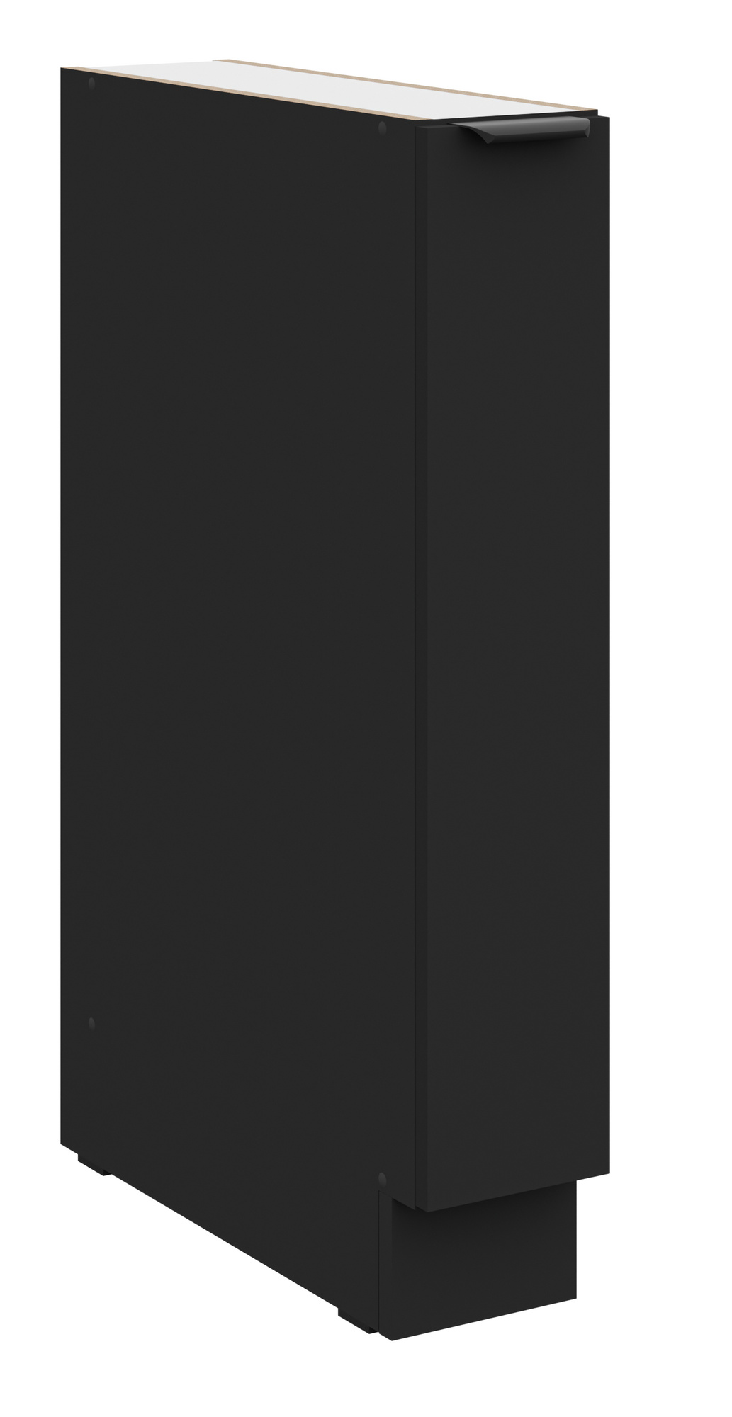 - Dvířka a čela šuplíků jsou vyrobeny z LTD desky výšky 16 mm v barvě Černá mat