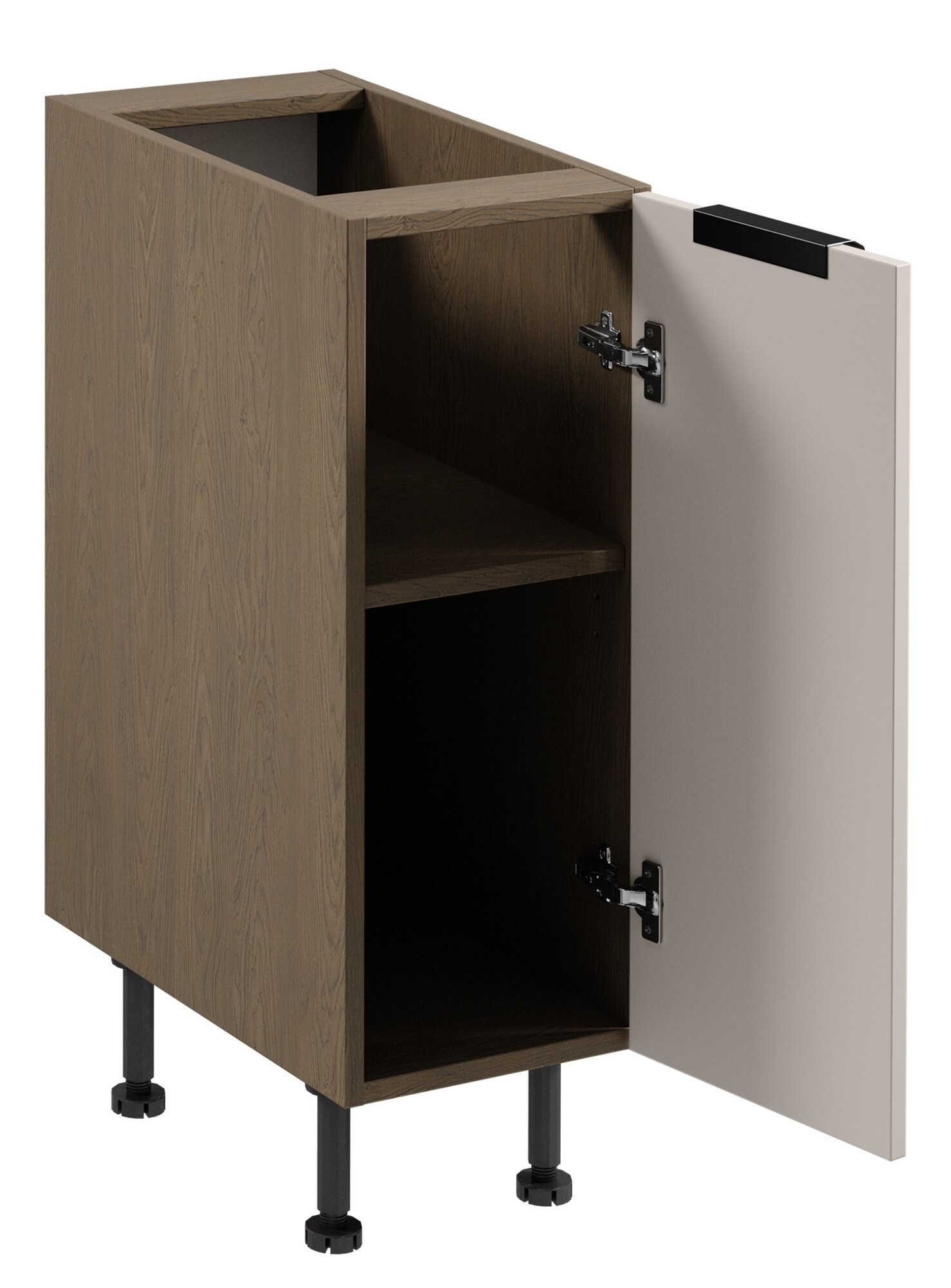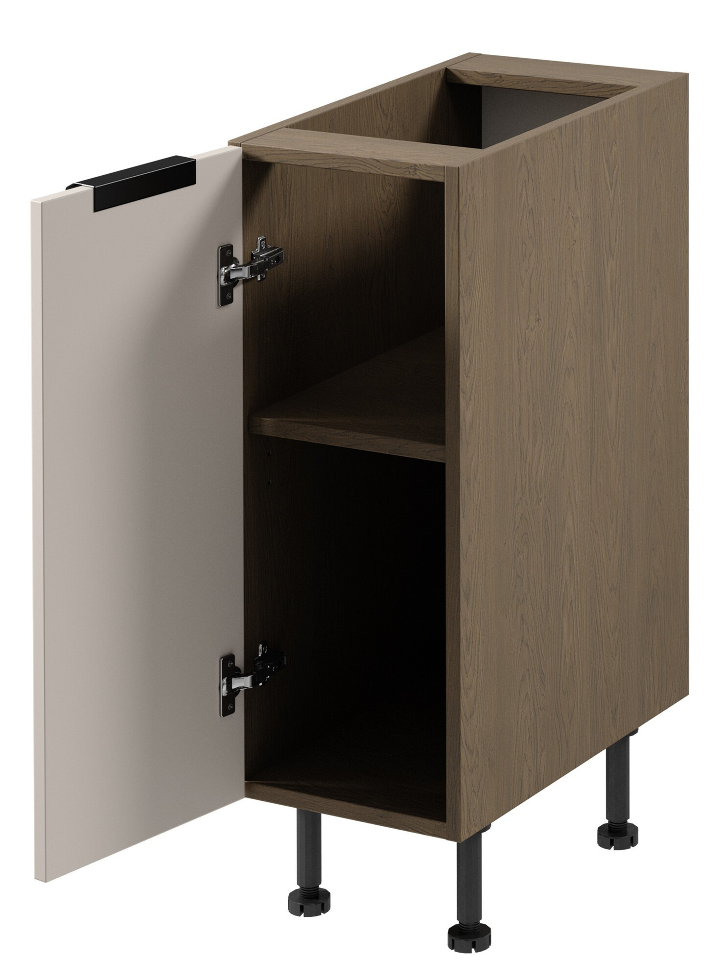 - Dvířka horních skřínek a dvířka vysokých skříní jsou universální (Pravé/Levé)