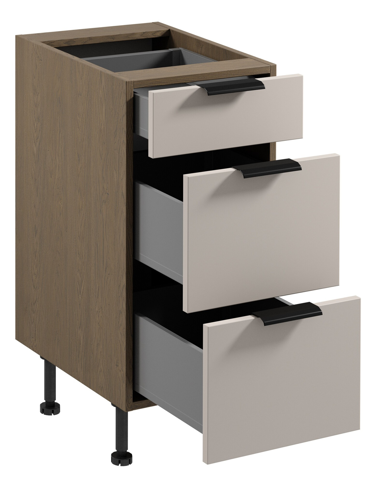 - Šuplíky jsou vyrobeny z kovu lakované šedou barvou