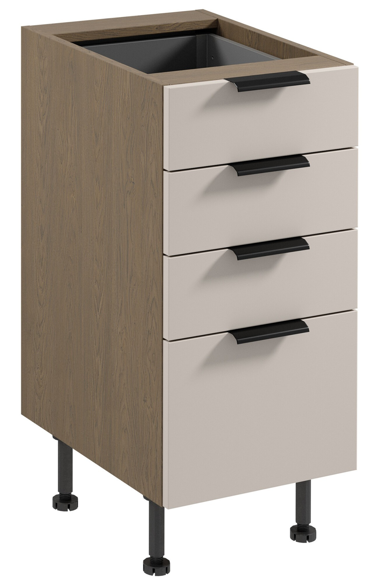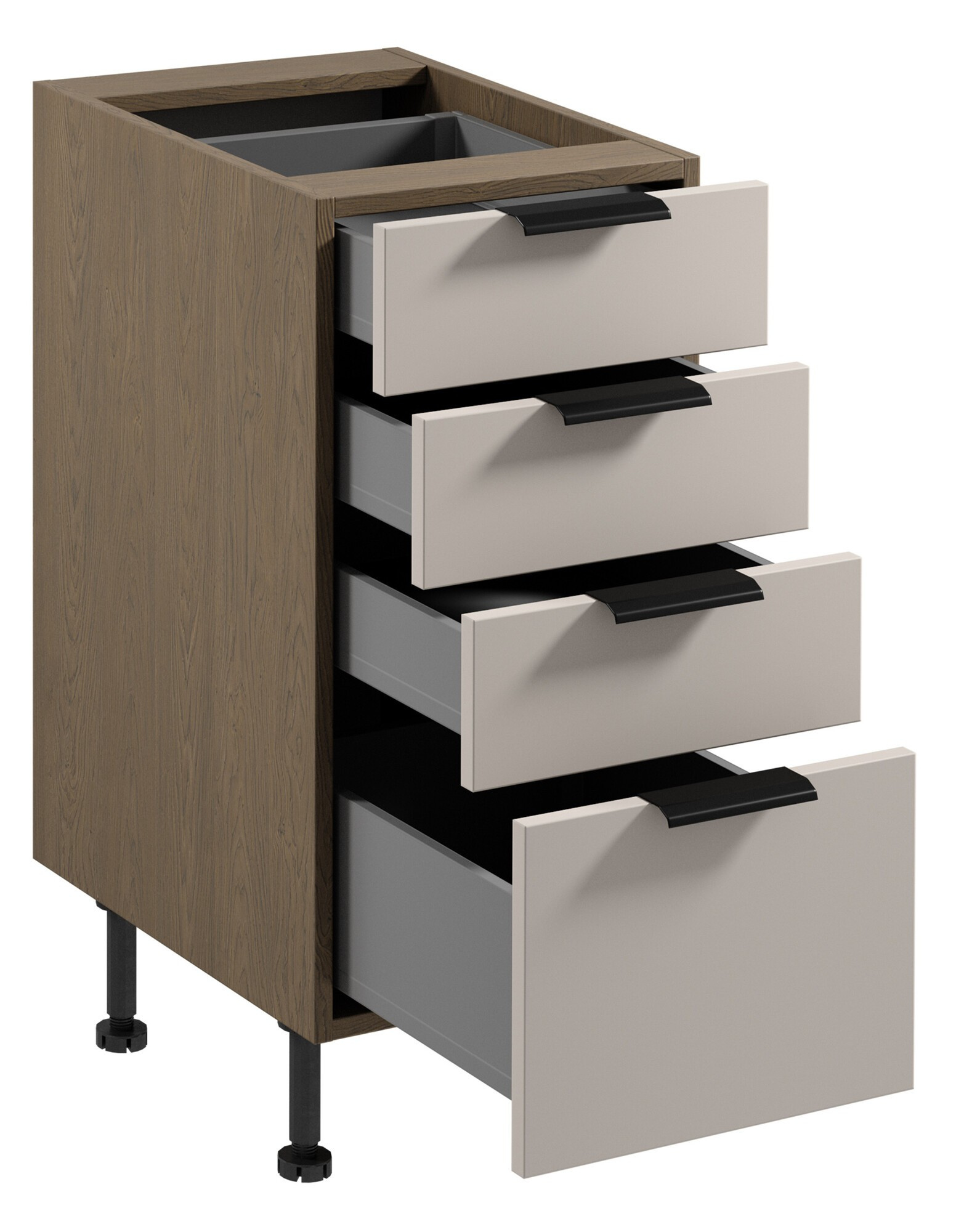 - Šuplíky jsou vyrobeny z kovu lakované šedou barvou