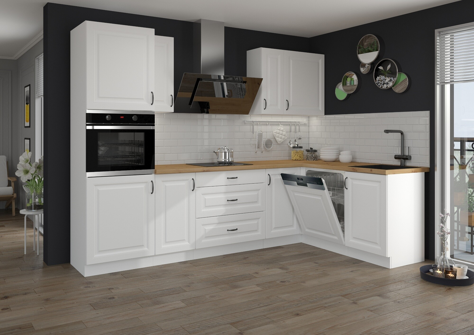 - Dvířka horních, dolních skřínek a dvířka vysokých skříní jsou universální (Pravé/Levé)