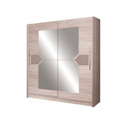 DOME šatní skříň s posuvnými dveřmi hodící se ke stejnojmenné ložnici. Skříně se vyrábí i v šíři 200 cm. Barva provedení v dubu Sonoma v kombinaci s capuccino leskem.